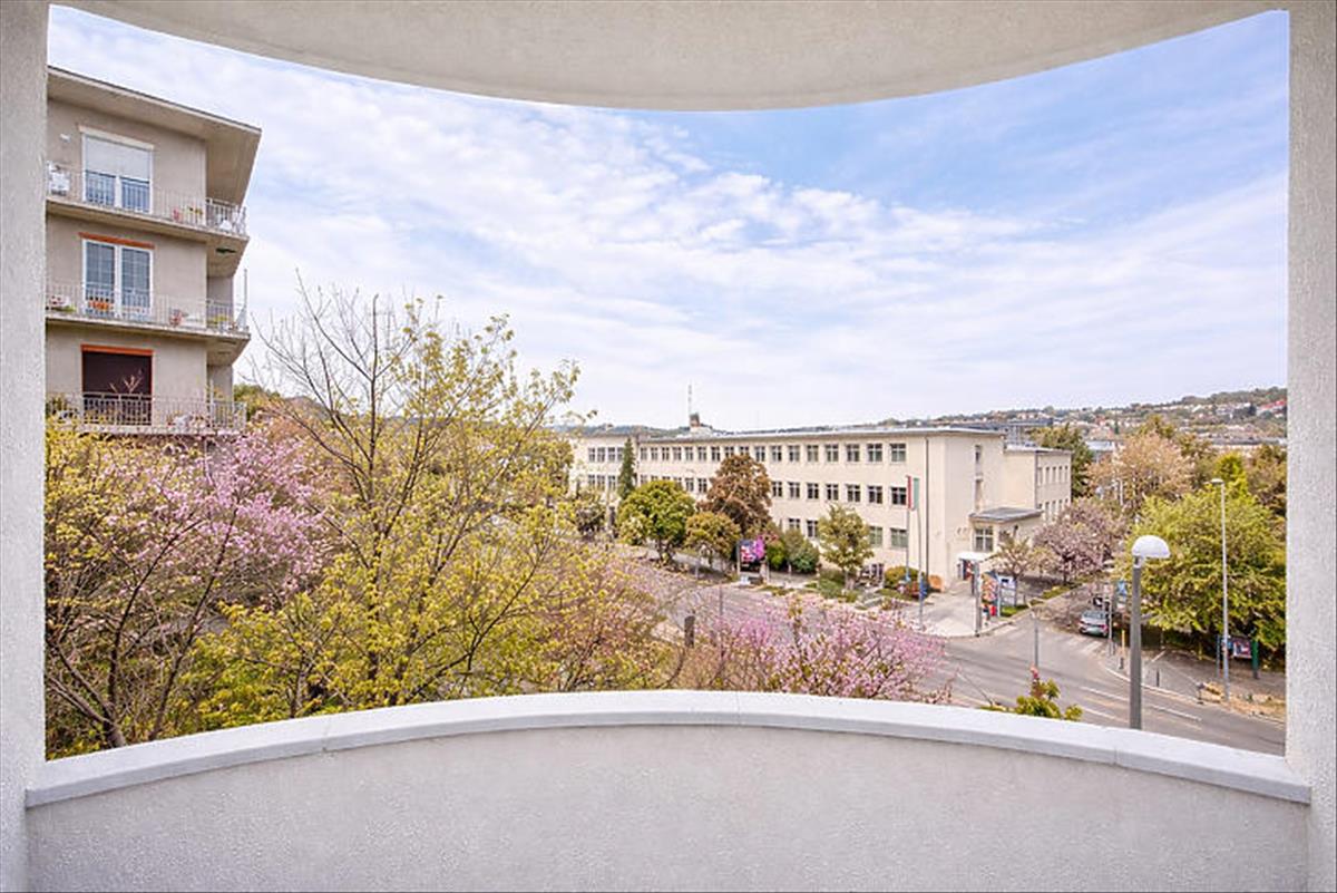Világos, erkélyes lakás eladó a XI. kerület közkedvelt részén, Bauhaus házban – Zsombolyai utcában.