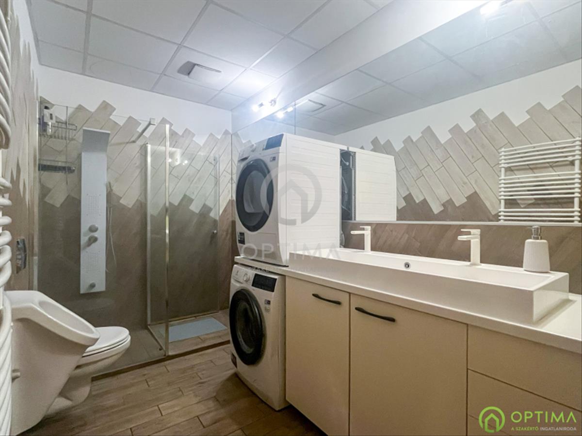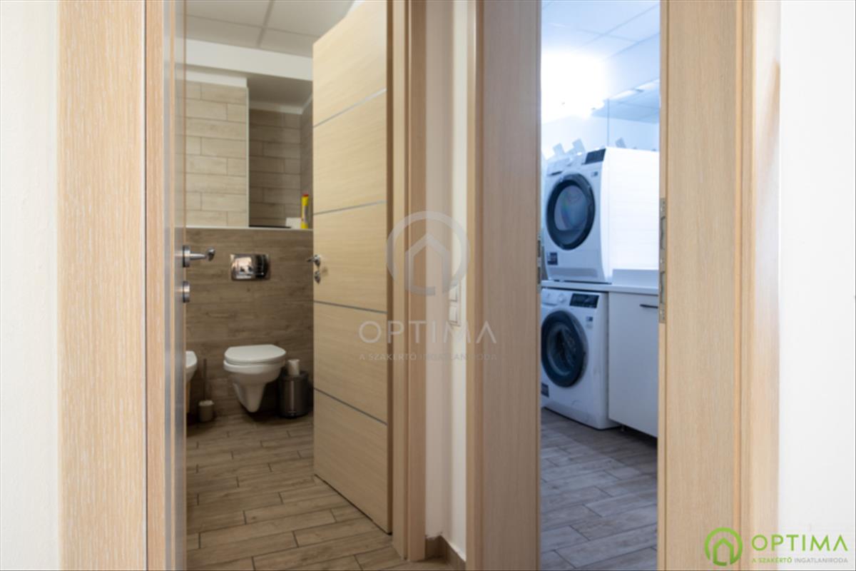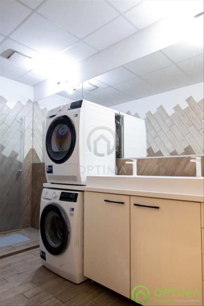 A konyha beépített és teljesen gépesített, a lakás klímaberendezéssel felszerelt. Külön wc bidével, valamint WC-s fürdőszoba is kialakításra került.