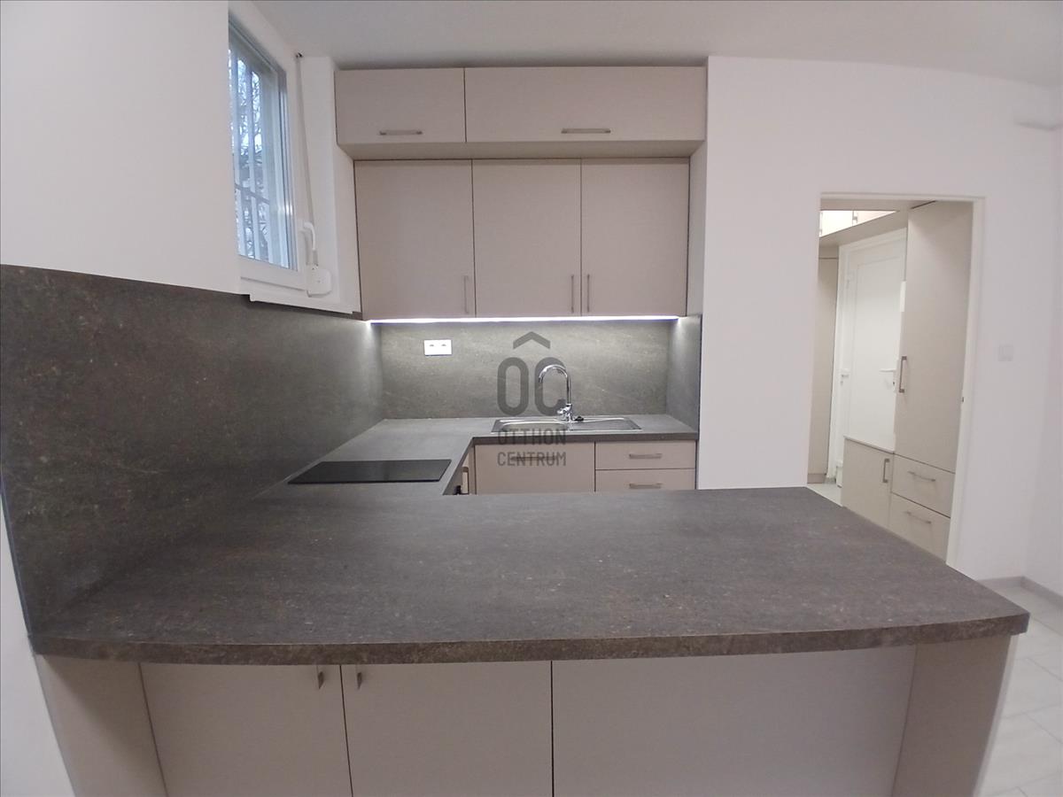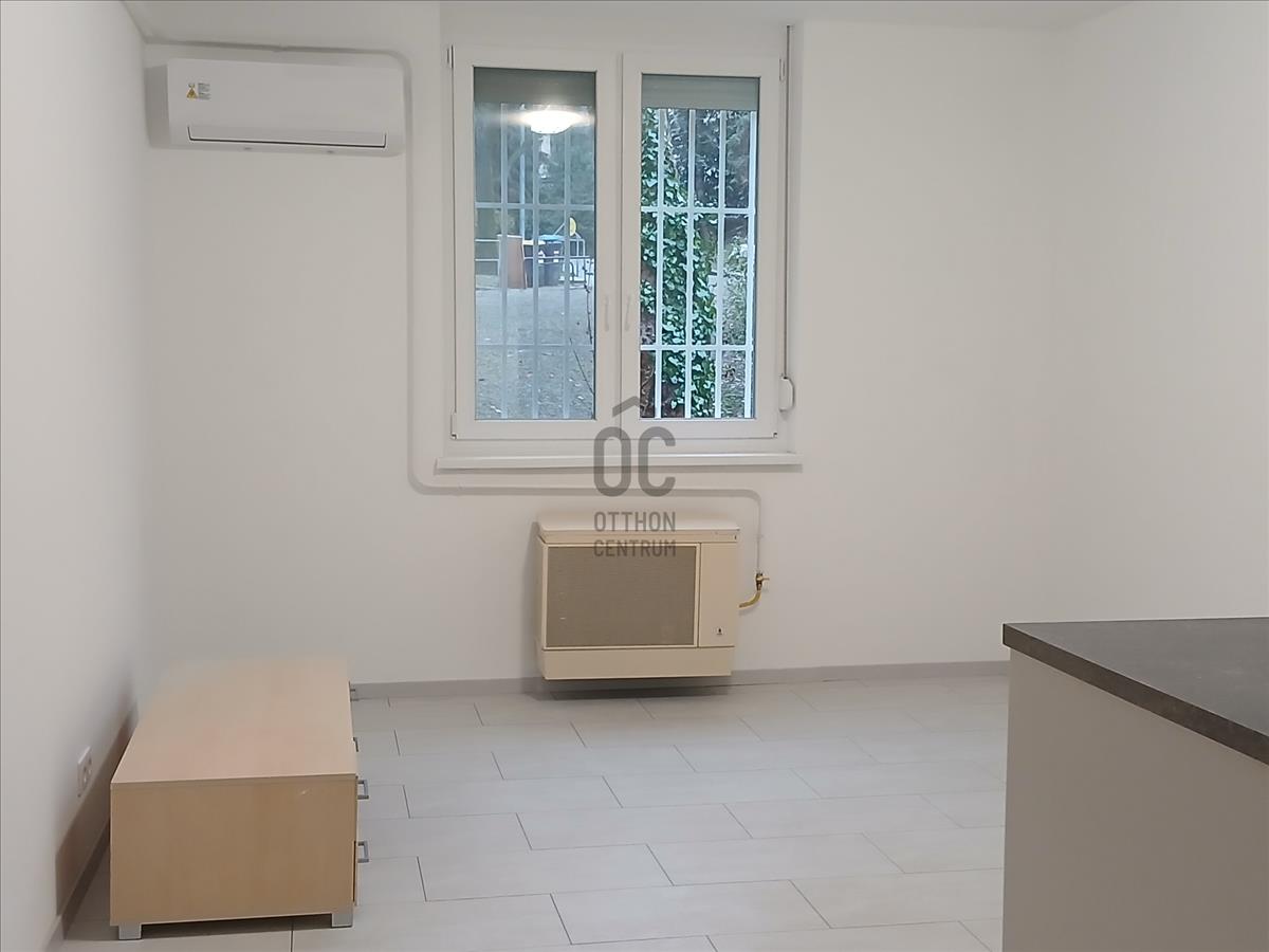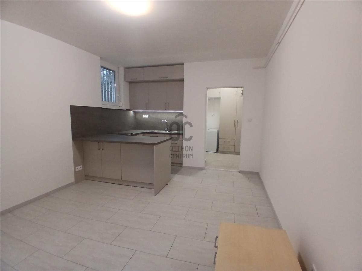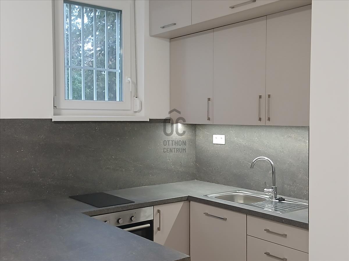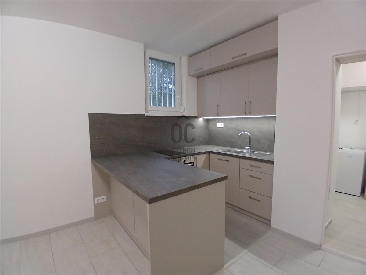 Eladó Budapest XI. kerületében, Sasad városrészben, a Rahó utcában egy frissen felújított földszinti, zöld kertre néző garzonlakás.