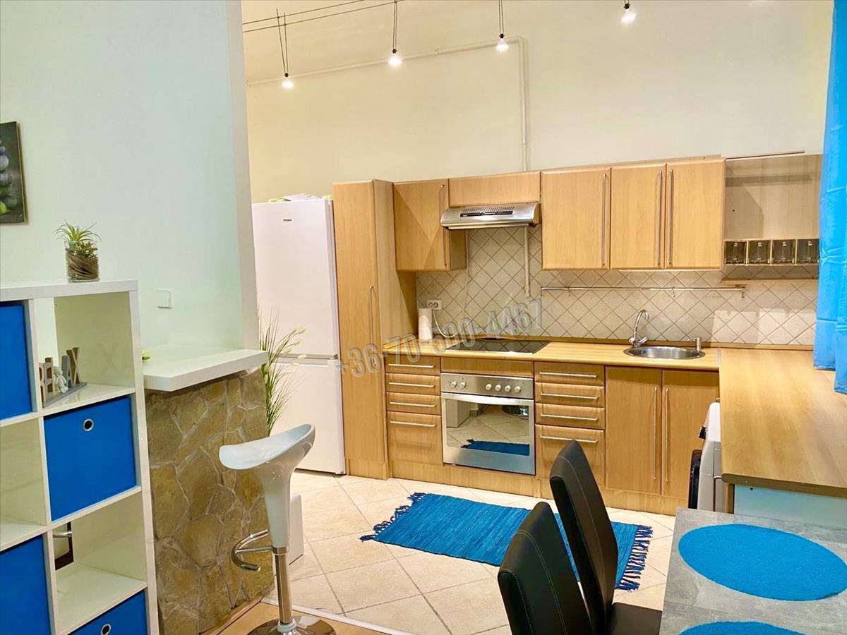 Alapterülete 36 nm, 1 szobás, részben amerikai konyhás kialakítású, melyhez részben szeparálva a hálórész kapcsolódik. Állapota felújított, műanyag nyílászárókkal és redőnyökkel felszerelt, új konyhabútor új gépesítéssel. Burkolatai igényesek, kialakítása kellemes hatású.