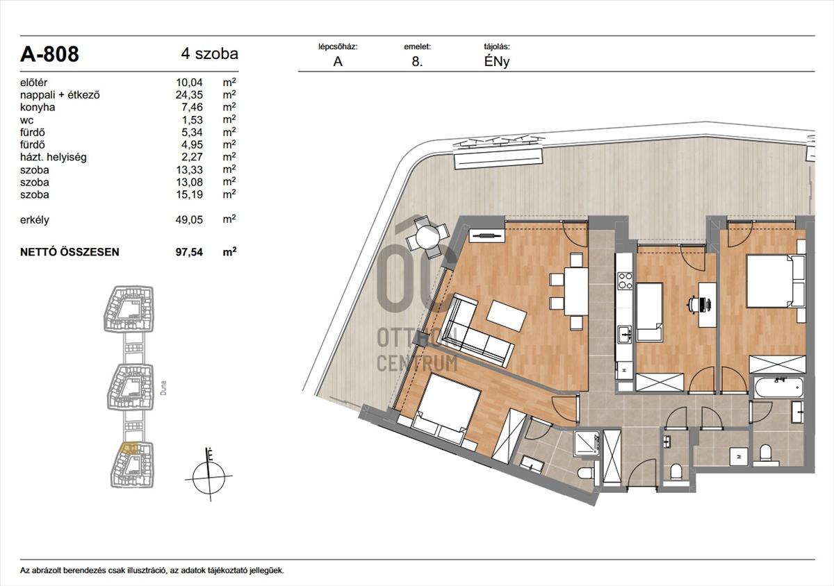 A teraszról a Duna látványa, a vízpart halk morajlása és a modern városi környezet tökéletes harmóniája adja az itt élők mindennapjainak különleges atmoszféráját.