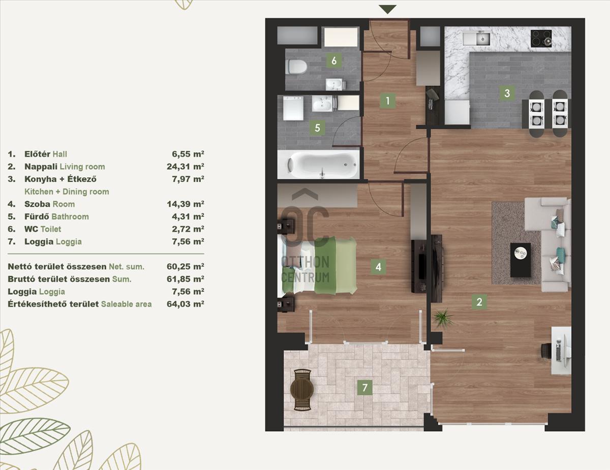 - Alapterület:64 m2