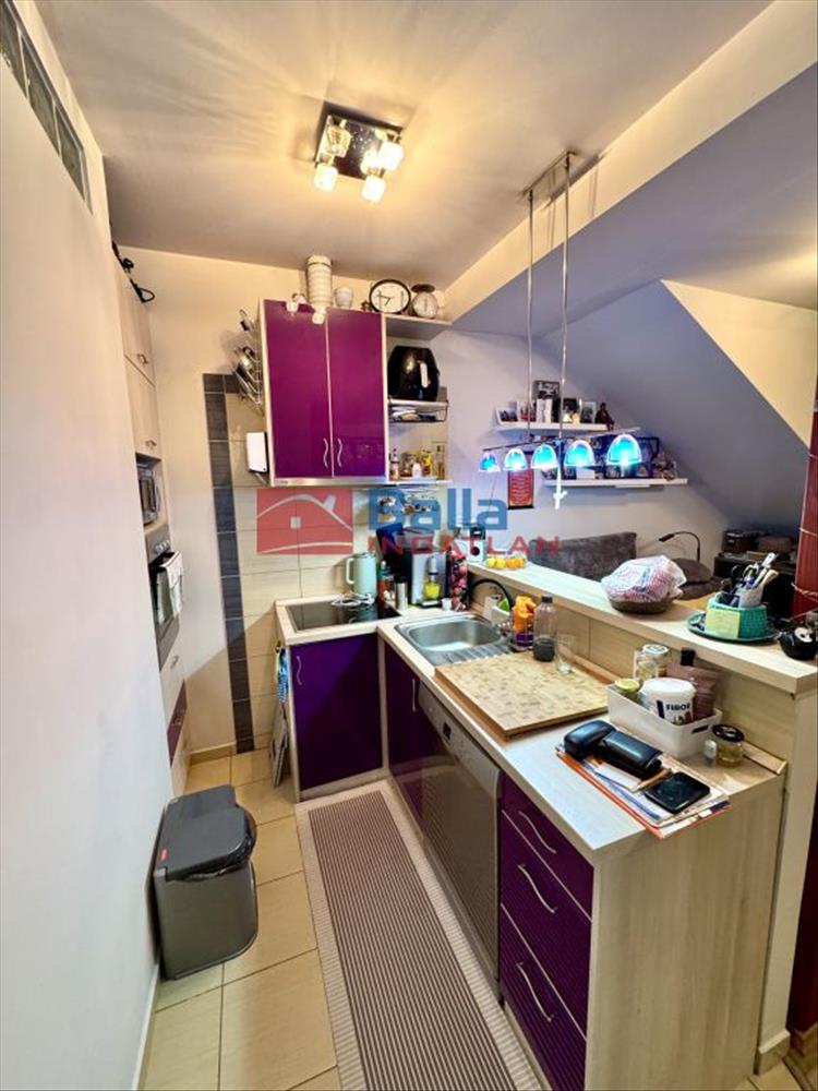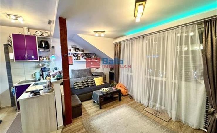Az ingatlan szép, megkímélt, mondhatni új állapotú. Egy jó méretű étkezős, amerikai konyhás nappaliból, egy kényelmes hálószobából (külön 1 m2-es erkéllyel), sarokkádas fürdőszobából és külön wc-ből áll, valamint egy tágas 10 m2-es félig fedett teraszból. a vételárat képezi a beépített konyhabútor a tűzhellyel, sütővel, elszívóval és a mosogatógéppel. Minden ami beépített marad is. a hálószobában található egy hatalmas gardrób szekrény is. Fürdő külön található a wc-től. Itt kapott helyet a turbó kazán is, melyet minden évben karbantartanak. a lakáshoz tartozik egy majdnem akkora alapterületű padlástér mint a lakás. Klimatizált és riasztóval felszerelt.