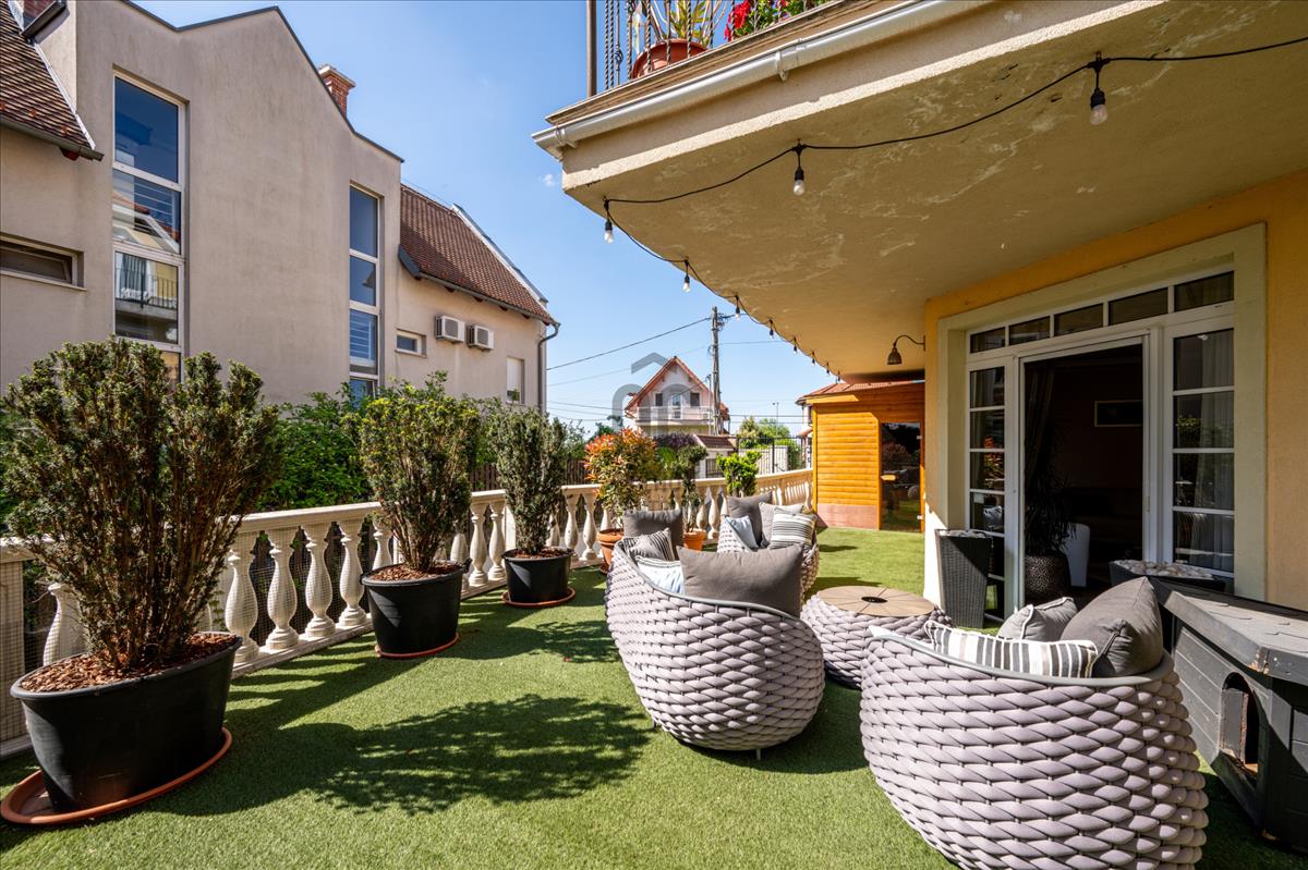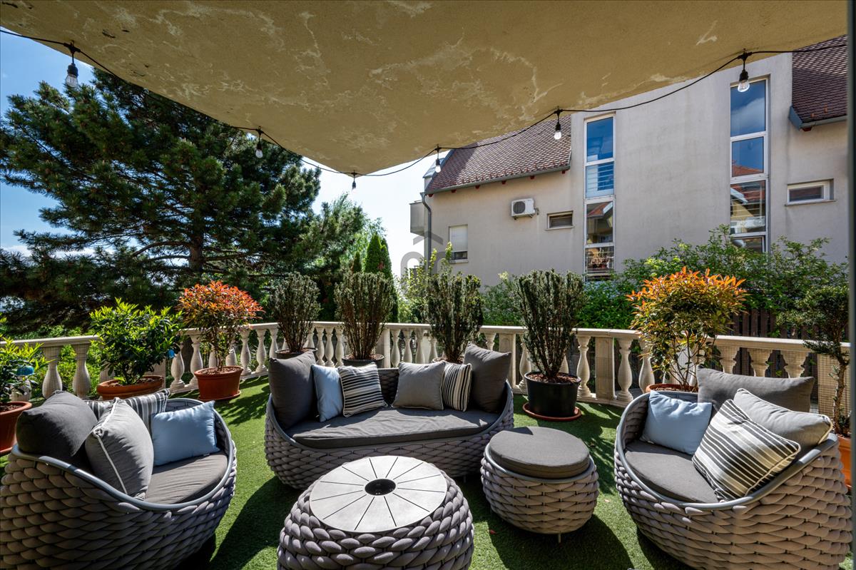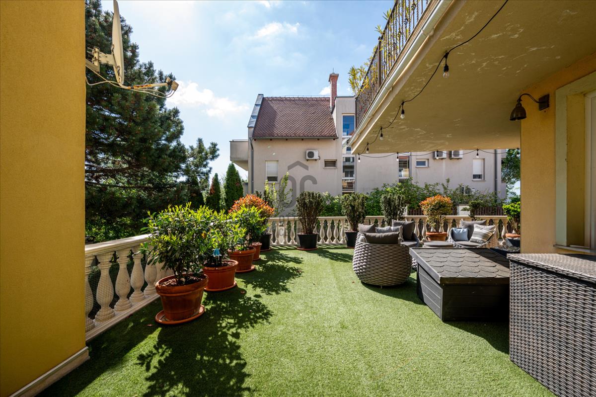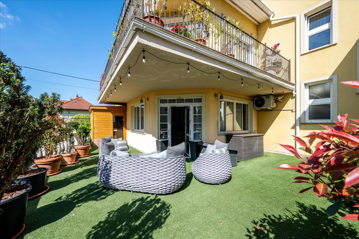 A lakók kényelmét egy 400 m²-es közös kert is szolgálja, amely tovább növeli az ingatlan exkluzivitását.
