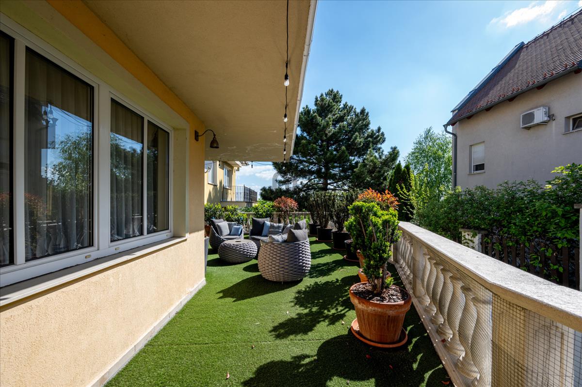 A XI. kerület egyik legcsendesebb, forgalomtól szinte teljesen mentes utcájában, Hosszúréten kínálom megvételre ezt az igazán különleges adottságokkal rendelkező, 97 m²-es, 3 szobás lakást, amely ötvözi a város közelségét és a nyugalom luxusát.