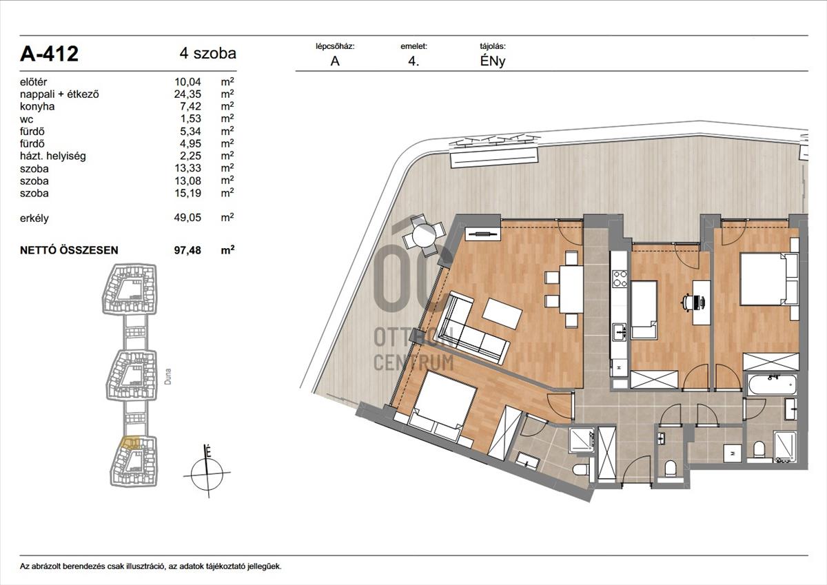 A teraszról a Duna látványa, a vízpart halk morajlása és a modern városi környezet tökéletes harmóniája adja az itt élők mindennapjainak különleges atmoszféráját.