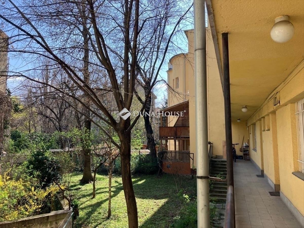 Az ingatlan a magasföldszinten helyezkedik el, belső kertre néz a konyha, a szobák ablakai park felé nyílnak, nyugati tájolással