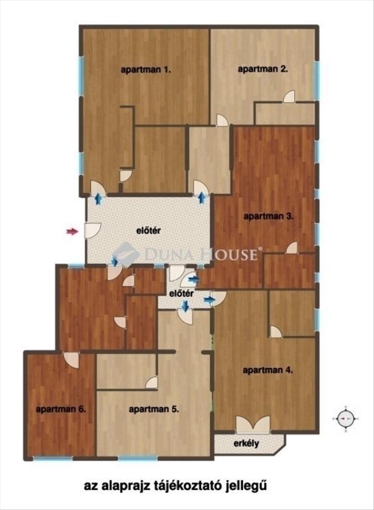 A szálláshely a társasház magasföldszintjén két külön helyrajziszámon lévő lakásból lett kialakítva, és csak egyben eladók! a jó állapotú társasház lépcsőháza és udvara rendezett, esztétikus.