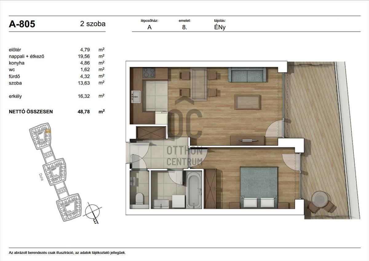 A teraszról a Duna látványa, a vízpart halk morajlása és a modern városi környezet tökéletes harmóniája adja az itt élők mindennapjainak különleges atmoszféráját.