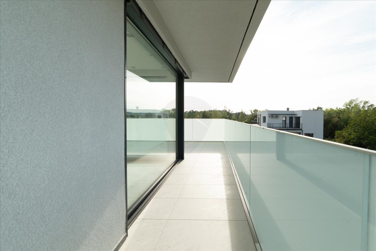 A teraszok vízszigetelése Sika Fóliával, terv szerinti hőszigetelés vakum panellel és pir hőszigetelő táblákból lett kiépítve. a teraszok fűtöttek, az áram és a víz bevezetésre került, minden teraszra jakuzzi telepíthető, ennek előkészítése megtörtént.