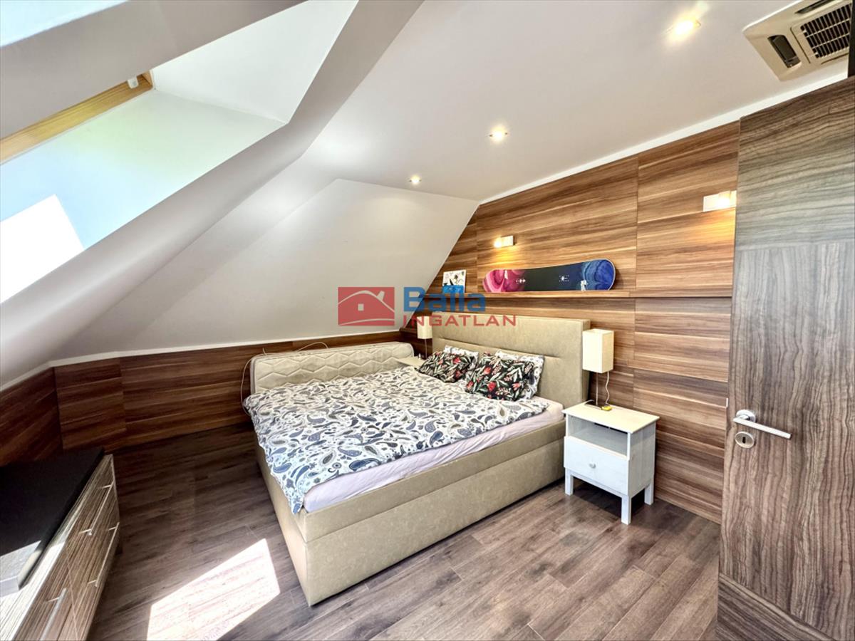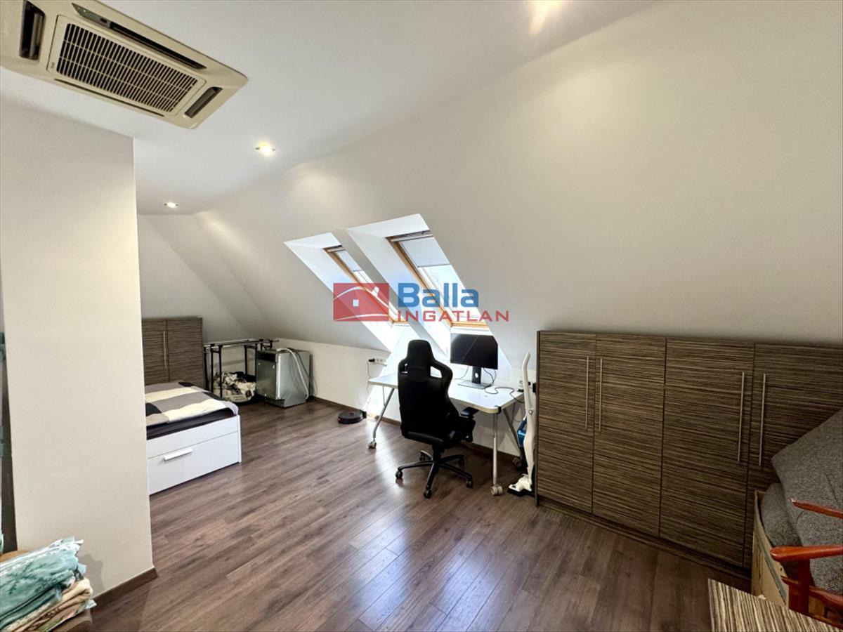 A nagy lakásban található egy nagyon hangulatos 28 m2-es amerikai konyhás nappali egy beépített konyhabútorral, gépekkel, melyek a vételárat képezik (ahogy minden beépített bútor). Innen jutunk ki a 24 m2-es rendkívül napos teraszra, ami nagyon jól berendezhető akár jakuzzival, kerti bútorokkal, napernyőkkel, grillsütővel. Legnagyobb szobája 20 m2-es, mellette található egy 18 m2-es és végül egy 10 m2-es. Mindegyik külön nyílik a közlekedőből. a sok beépített szekrénynek köszönhetően nagyon jól ki vannak használva a nem annyira hasznos alapterületek is. a konyha mellett található egy (régen) kis konyha szintén, ez átalakítható akár egy kis dolgozószobának is vagy gardróbnak. Fürdő, wc külön és egyben is. a lépcsőházban kettőt lépve átjutunk a kis lakásba, mely egy 23 m2-es amerikai konyhás nappaliból, egy 6 m2-es szobából és egy fürdőszobából áll.