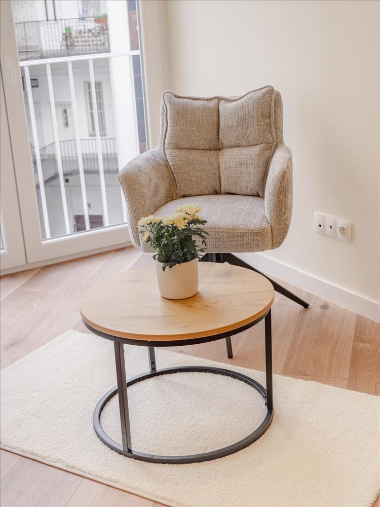 Tágas Terek, Fényárban: Egy impozáns, napfényes nappali, mely tökéletes a pihenésre és a vendéglátásra. Ehhez társul két hálószoba, melyek meghitt szigetet biztosítanak a nyüzsgő város zajától.