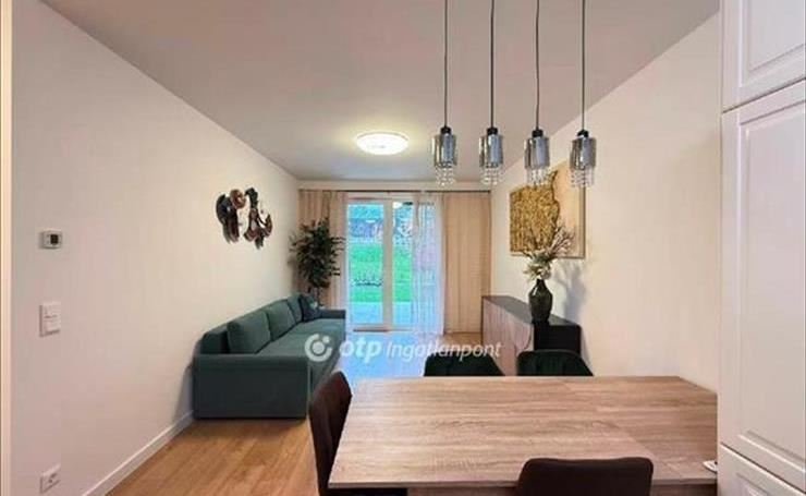 A modern építészeti irányzatoknak megfelelő, liftes, négyemeletes társasház kifinomult megjelenésű és praktikus elrendezésű. a biztonságos, zárt és ízlésesen kialakított lépcsőházból a tágas, beépített gardróbbal ellátott előszobába léphetünk. Bal oldalon található a kádas fürdőszoba, egy különálló tárolóhelyiség, valamint a hálószoba. a lakás központi része a világos, keleti fekvésű, amerikai konyhás nappali, amely közvetlen kijáratot biztosít a teraszra és a gondozott kertre, mind a nappaliból, mind a hálóból megközelíthetően.