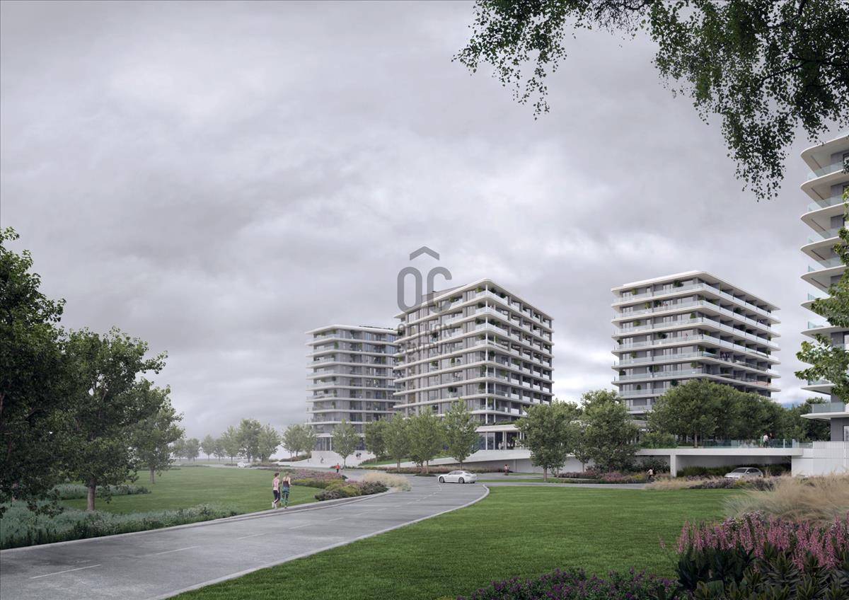 A lakóépületek modern, letisztult megjelenése a Duna vonalvezetését idézi.