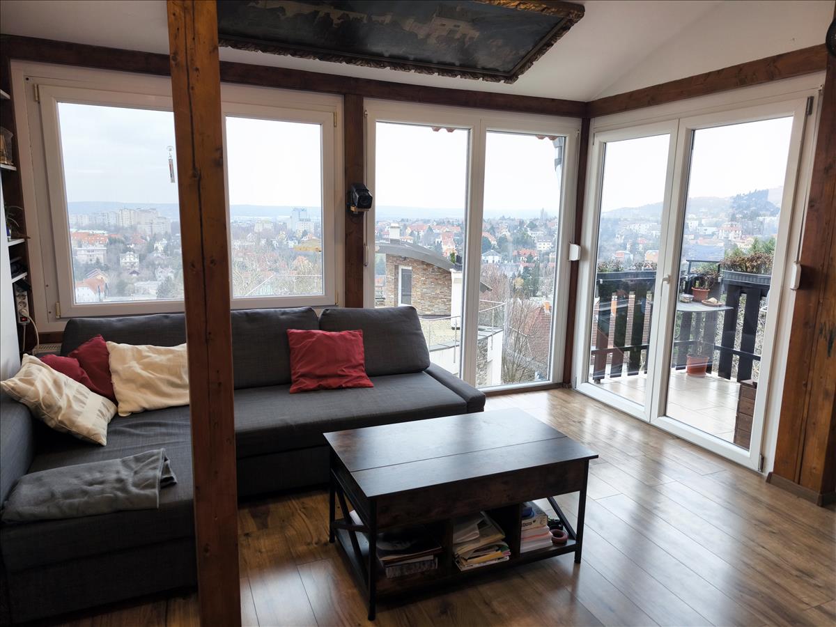 Panorámás téglalakás Sasadon 86+25 m2-en