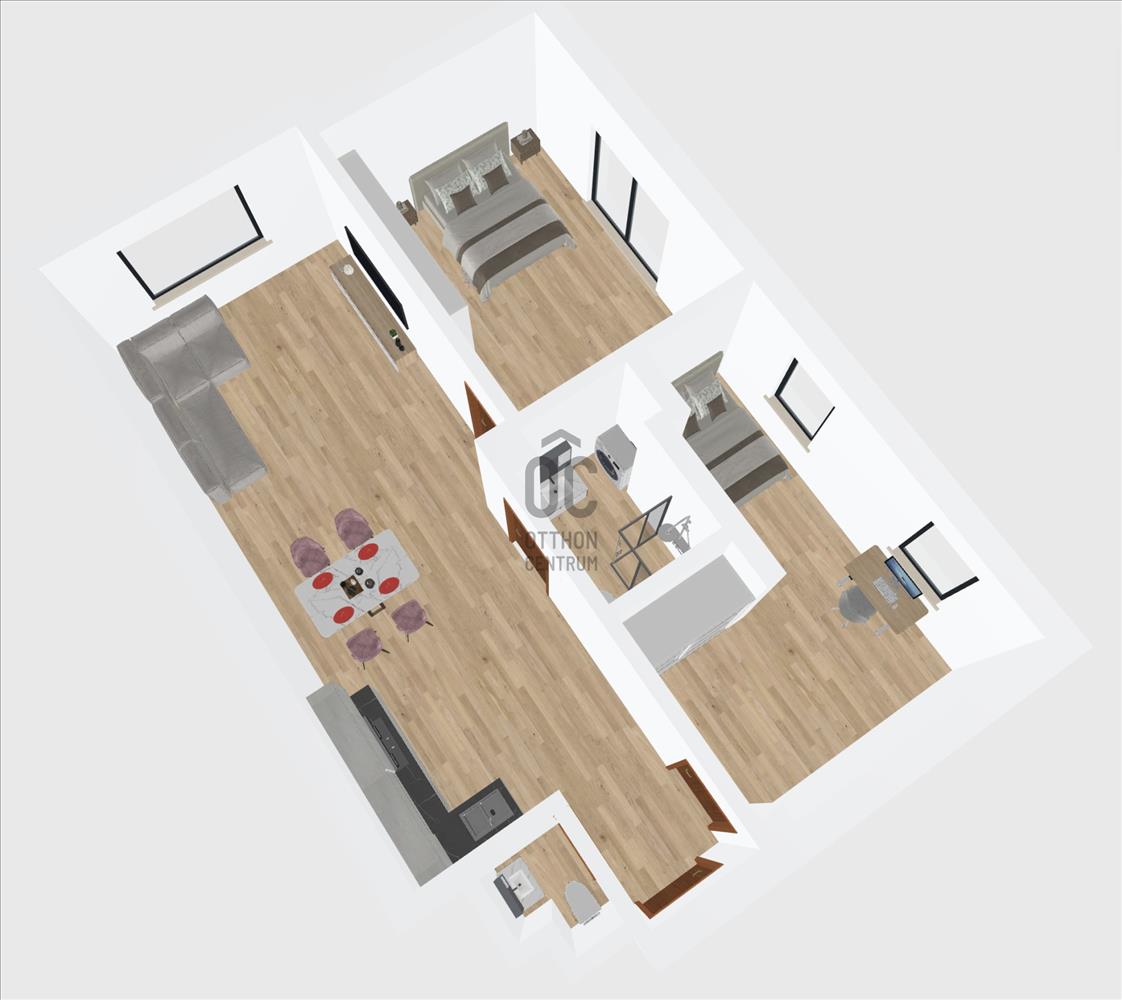 -Nagy amerikai konyhás nappali (37 m2), kettő teljes értékű, tágas hálószoba (17 és 18 m2)