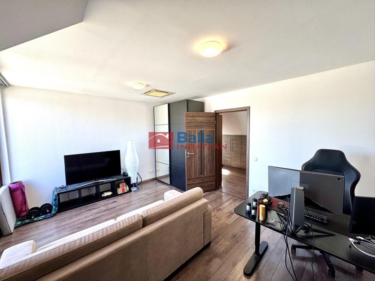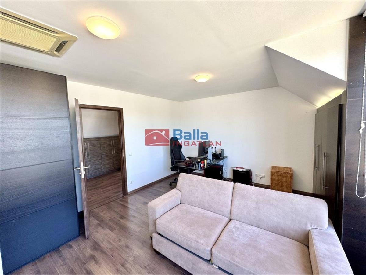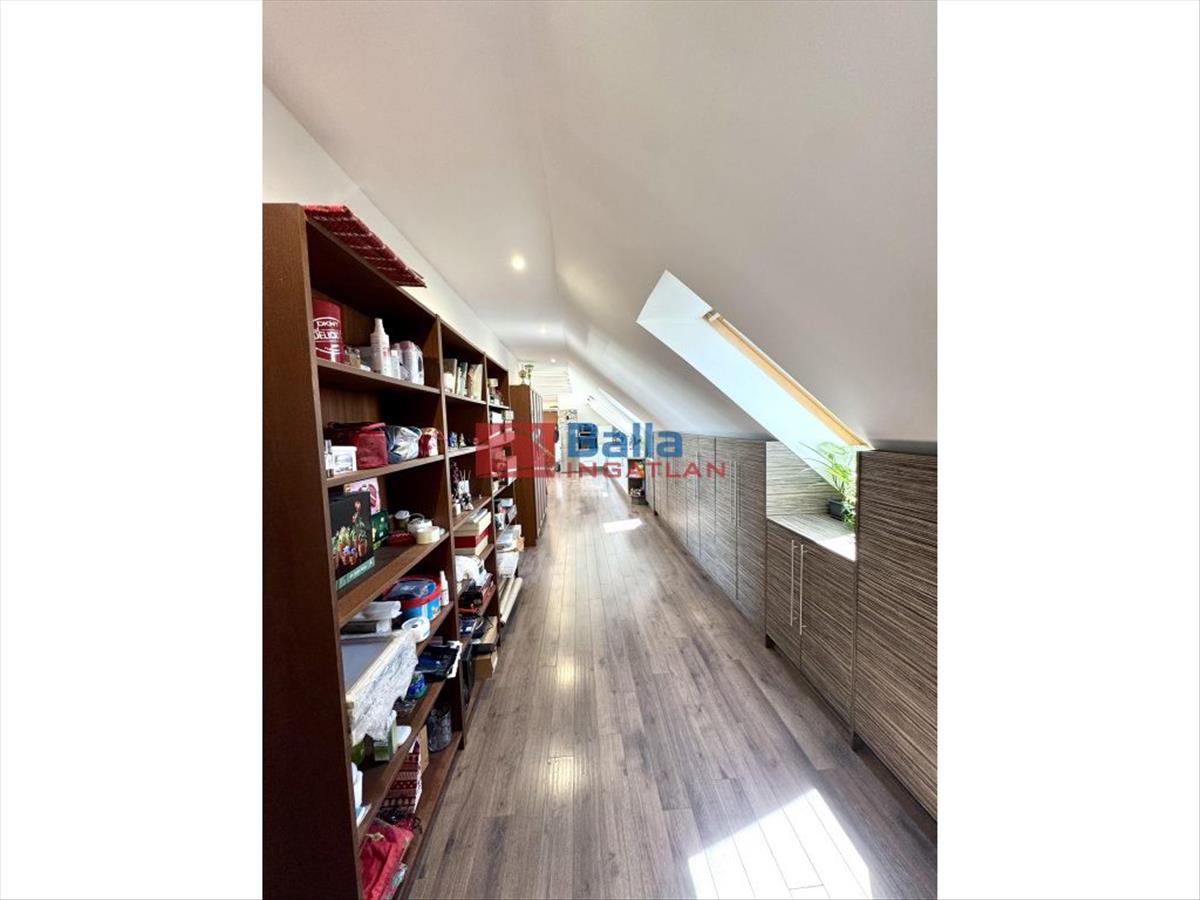 A nagy lakásban található egy nagyon hangulatos 28 m2-es amerikai konyhás nappali egy beépített konyhabútorral, gépekkel, melyek a vételárat képezik (ahogy minden beépített bútor). Innen jutunk ki a 24 m2-es rendkívül napos teraszra, ami nagyon jól berendezhető akár jakuzzival, kerti bútorokkal, napernyőkkel, grillsütővel. Legnagyobb szobája 20 m2-es, mellette található egy 18 m2-es és végül egy 10 m2-es. Mindegyik külön nyílik a közlekedőből. a sok beépített szekrénynek köszönhetően nagyon jól ki vannak használva a nem annyira hasznos alapterületek is. a konyha mellett található egy (régen) kis konyha szintén, ez átalakítható akár egy kis dolgozószobának is vagy gardróbnak. Fürdő, wc külön és egyben is. a lépcsőházban kettőt lépve átjutunk a kis lakásba, mely egy 23 m2-es amerikai konyhás nappaliból, egy 6 m2-es szobából és egy fürdőszobából áll.