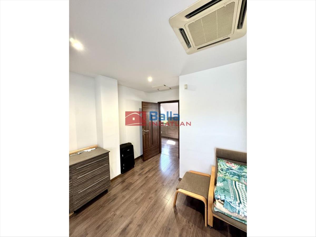 Az ingatlan újszerű, megkímélt állapotú. Eredetileg irodának használták sokáig, majd egy ideje lakhatásra. Tulajdoni lap szerint 143 m2-es, valóságban valamivel nagyobb. a nagy lakás egy amerikai konyhás nappaliból és 3 nagy hálószobából áll, a kis lakás egy nappali és egy szobából, mely vele szemben található külön bejárattal. Egy helyrajzi számon szerepel a két lakás, ugyanakkor könnyedén kiadható külön külön, mivel külön mérőórákkal rendelkeznek, kivéve a gázt. Padlófűtés lett kiépítve mindenhol, valamint egy modernebb technológiával a klimatizálása (hideg víz keringetés).
