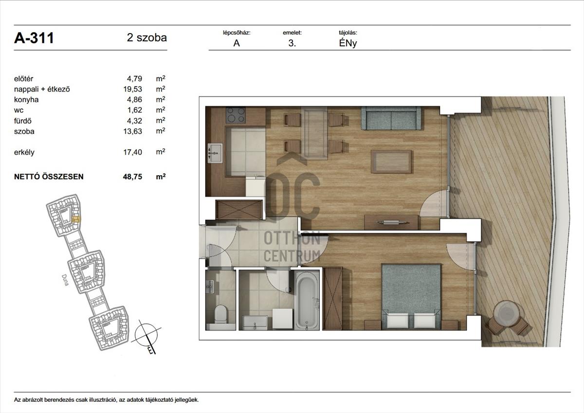 A teraszról a Duna látványa, a vízpart halk morajlása és a modern városi környezet tökéletes harmóniája adja az itt élők mindennapjainak különleges atmoszféráját.
