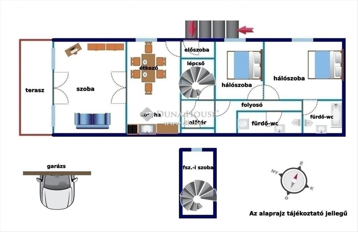- Tájolás:ÉNY