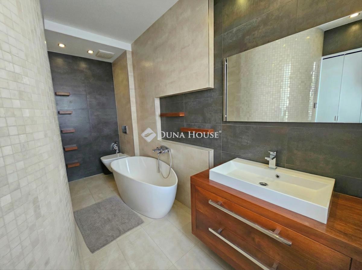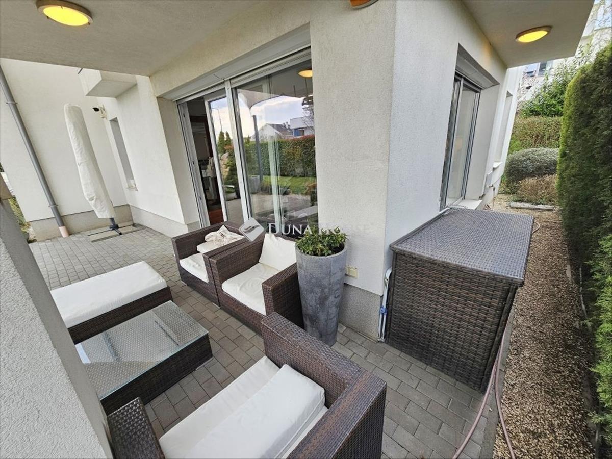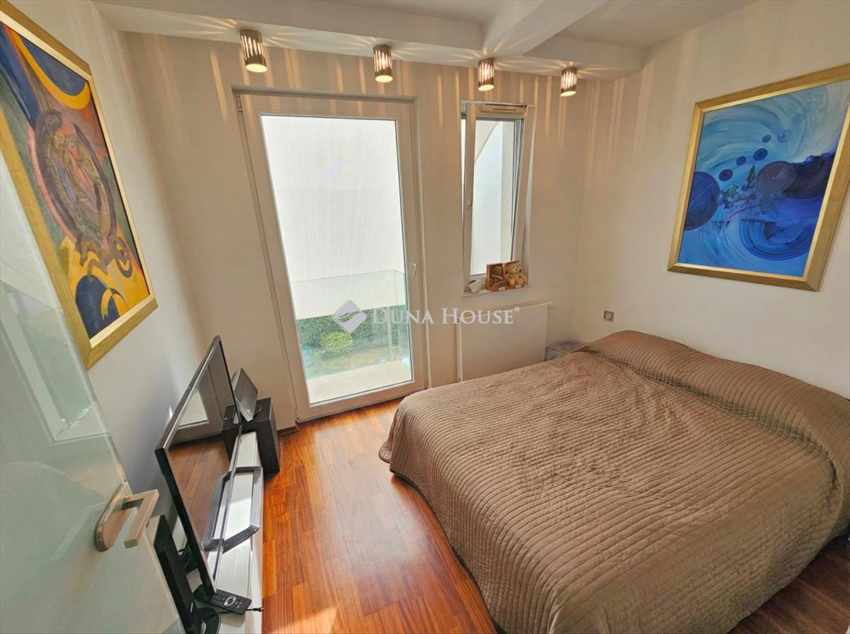 I offer In Újbudas well-deserved, popular and exclusive area, at the best part of Madárhegy, a smart apartment with floor and radiator heating, designed using luxury quality materials, furniture and equipped, with countless extras, exclusive use of a 200sqm garden, 2 large car based, spacious garage spaces and 10m2 storage space. The building was built to a high standard, using modern technical solutions and quality materials (e. G. : 20 Cm isolation, Triple-pane windows), and surrounded by minimal-style residential buildings.