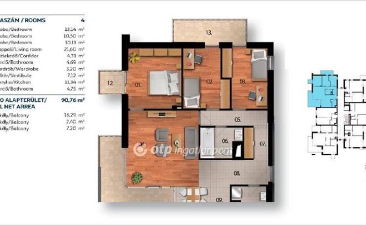 Lakások mérete: 43 nm-es, 1, 5 szobás lakástól a 150 nm-es, 5 szobás és a tetőteraszos, exkluzív penthouseig.