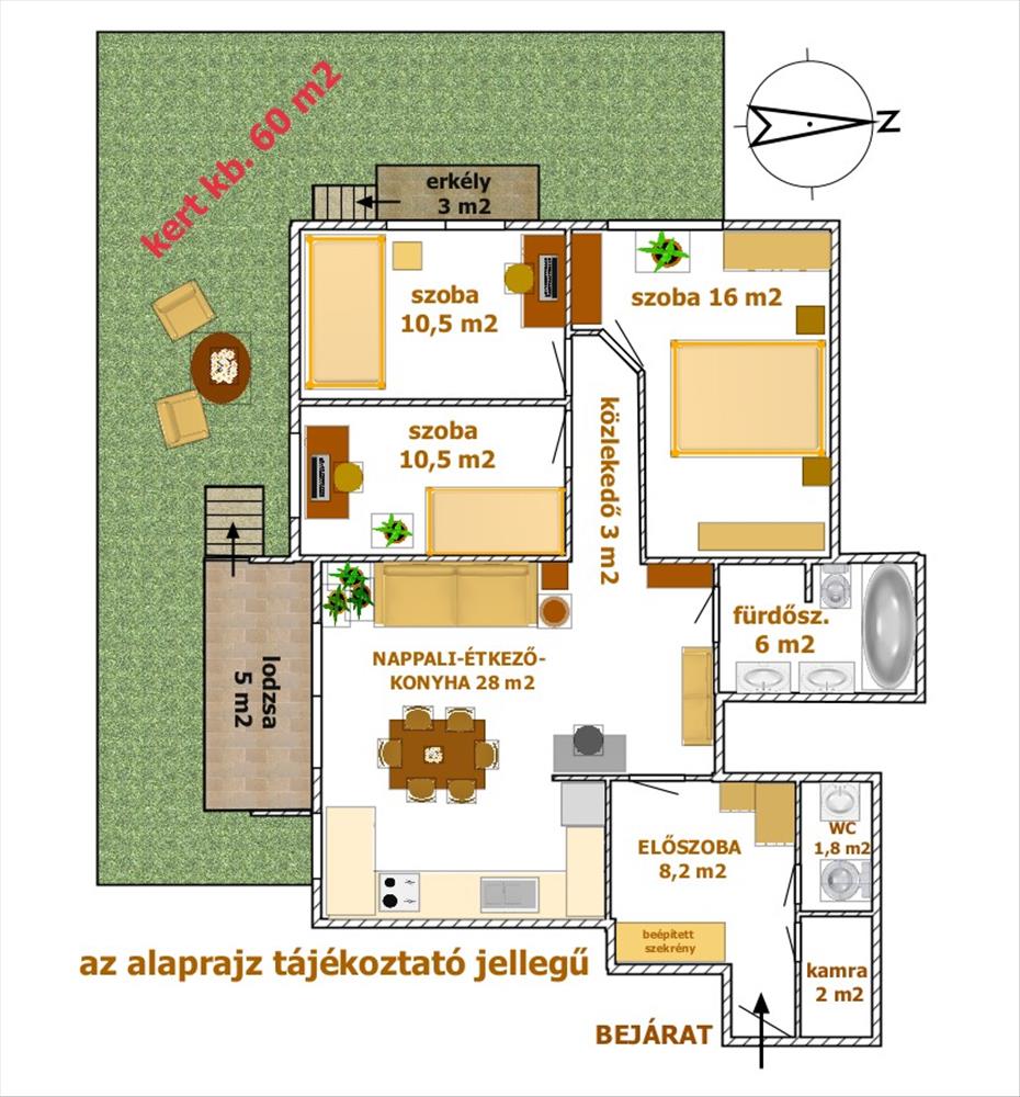·        Saját kertkapcsolat: 60 m²