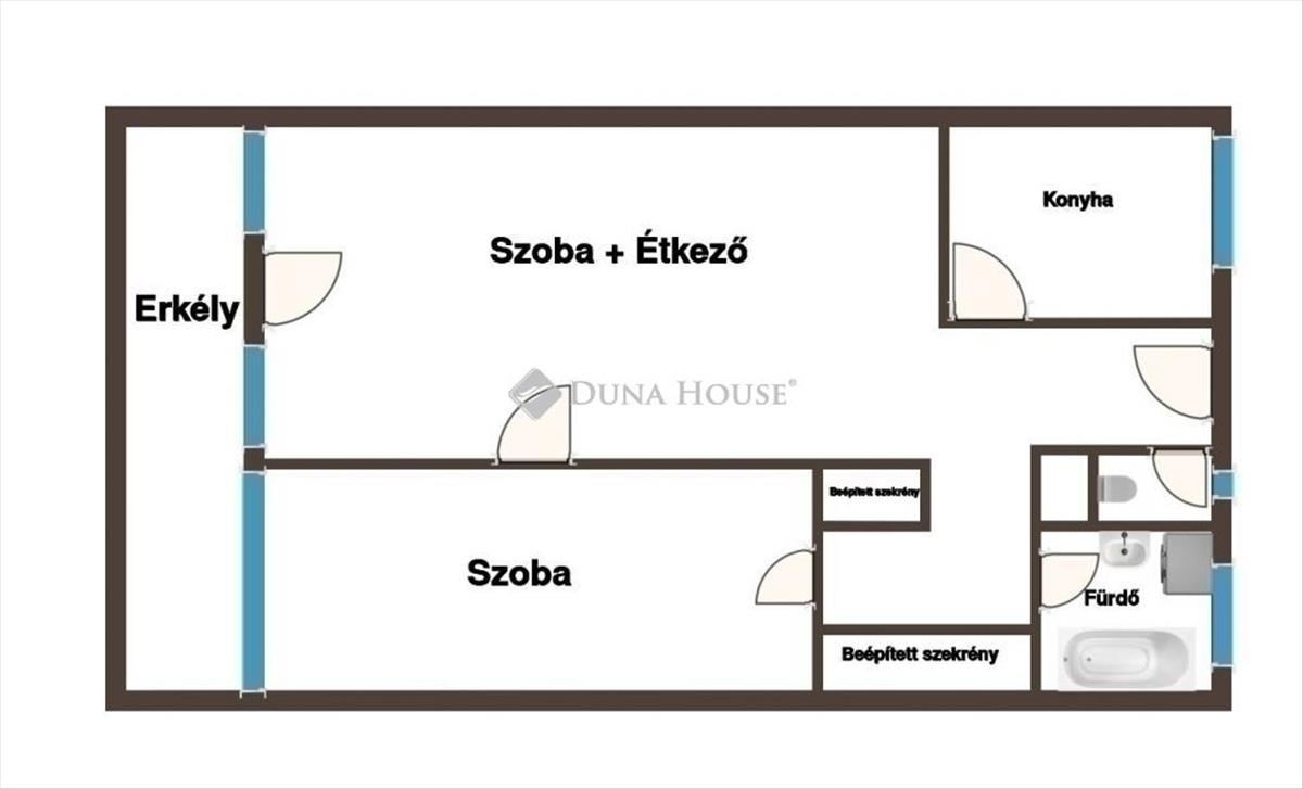* Alapterület: 59 m²-es, téglaépítésű lakás.