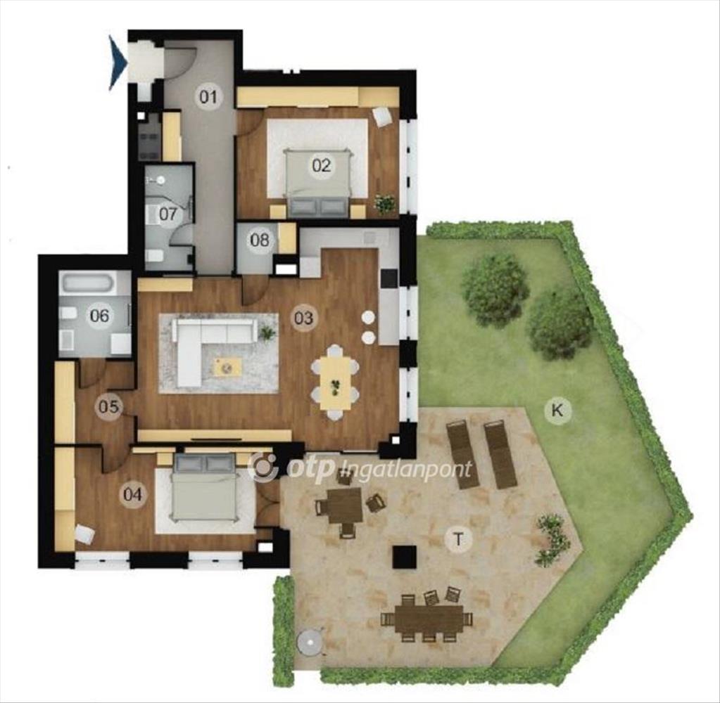 A hirdetésben szereplő lakás, a B épület földszintjén helyezkedik el, DK-i tájolással, 108, 48m2 alapterülettel, mely életteret tovább növeli az 51, 72m2 alapterületű terasz és a 46, 40m2 területű privát kert. a lakás helyiségei: előszoba, amerikai konyhás nappali és étkező, 2 szoba, 2 fürdőszoba, gardrób, kamra, terasz és kert.