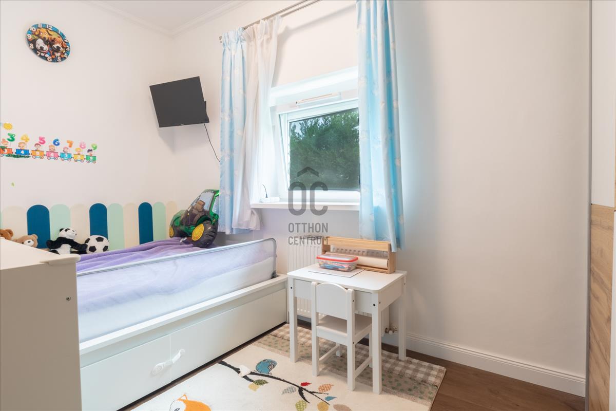 - Tájolása észak-keleti, a nappali és a 12 m2-es hálószoba ablakai a gondozott utcafronti előkertre néznek.