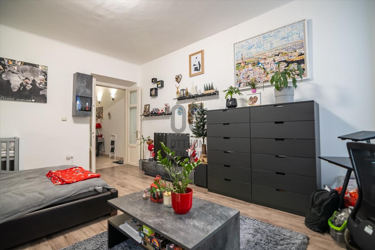 A lakás műszaki és esztétikai felújításon esett át: modern kondenzációs kazán, új nyílászárók, redőnyök és padlóburkolat biztosítják a komfortot.