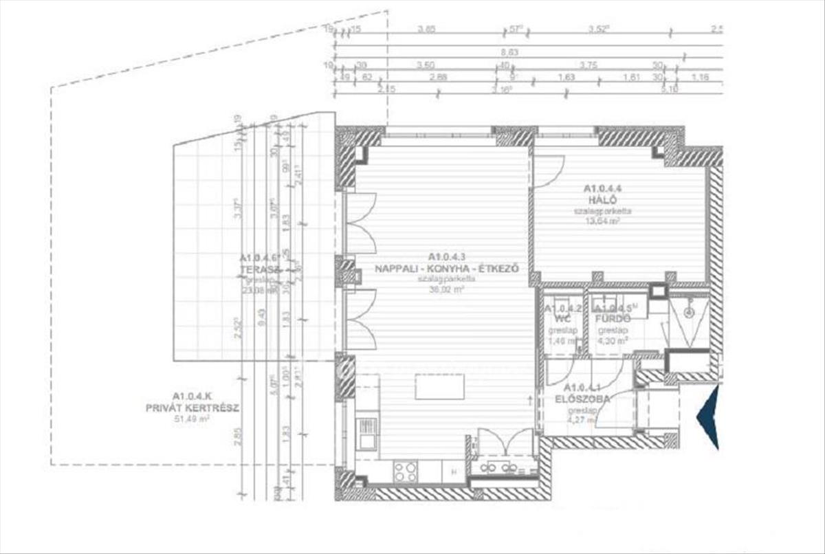 A hirdetésben szereplő lakás, az a épület földszintjén helyezkedik el, ény tájolással, 59. 69 m2 alapterülettel, mely életteret tovább növeli a 23. 08 m2 alapterületű terasz és a 51. 49 m2 területű privát kert. a lakás helyiségei: előszoba, wc, szoba, amerikai konyhás nappali, fürdőszoba.