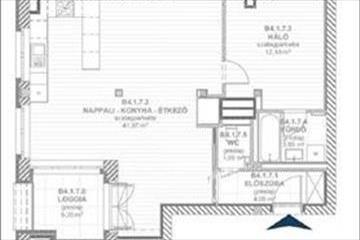 A lakás helyiségei: előszoba, wc, szoba, amerikai konyhás nappali, fürdőszoba.