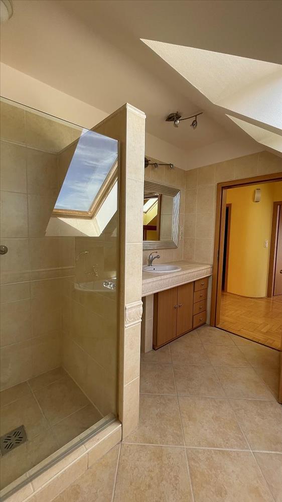 Az emeleti szinten 3 szeparált hálószoba, egy káddal és zuhanyzóval is felszerelt fürdőszoba, közlekedő, 2 terasz és egy franciaerkély lett kialakítva.