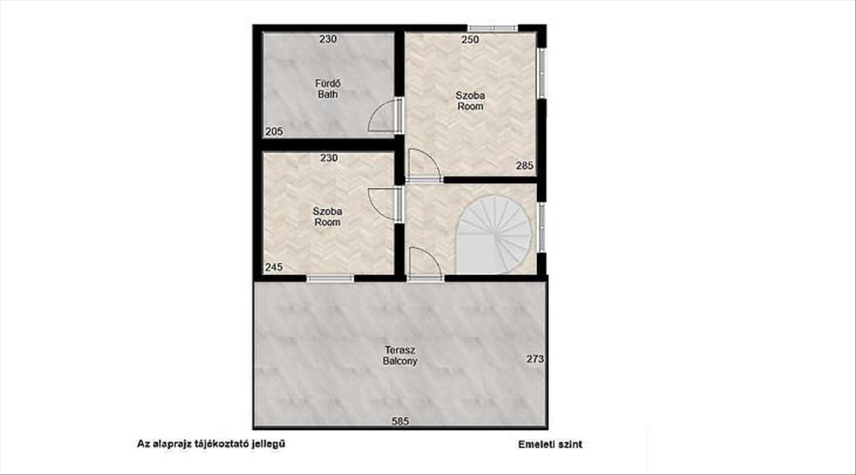 Az emeleti szinten található 2 háló, egy fürdőszoba wc-vel, és egy 16 nm -es saját terasz.