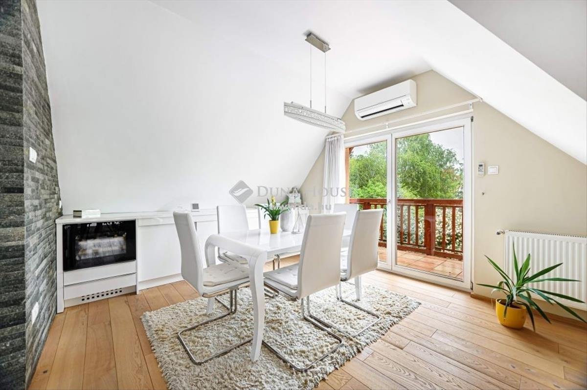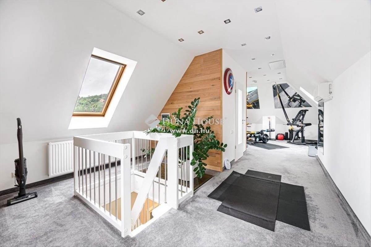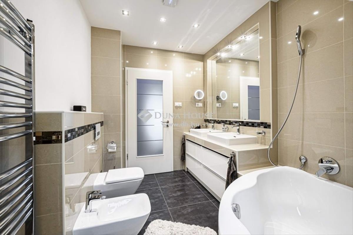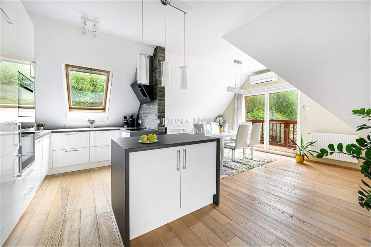 *** Exclusive panorámás nagylakás az erdő ölelésében! ***Megvételre kínálok Budapest XII. kerület egyik legnívósabb részén, csodálatos zöld környezetben, egy 173 négyzetméteres minden igényt kielégítő lakást. a 2 szintes ingatlan, egy 5 lakásos társasház 2. emeletén és tetőterében helyezkedik el, közvetlen szomszéd nélkül. a lakás belsőépítész tervei alapján került kivitelezésre, minden részletét a prémium anyaghasználat, a tágas jól funkcionáló terek, és a harmónia jellemzik. Az alsó szinten található a 48 négyzetméteres amerikai konyhás nappali, amely DNY-i tájolásának, és nagyméretű üvegfelületeinek köszönhetően rendkívül világos, jól benapozott. a 3 hálószobát, a központi élettértől elkülönülten a lakás hátsó részében alakították ki. Ezen a szinten található még egy kádas fürdőszoba, egy tusolós fürdőszoba, egy háztartási helyiség, valamint a szülői hálóhoz tartozó gardrób helyiség. Az ingatlan 4 db, összesen 15 négyzetméteres, részben fedett erkélykapcsolattal rendelkezik ahonnan csodálatos panoráma nyílik a környező hegyekre, az erdőre, és a városra egyaránt. a belső lépcsőn megközelíthető tetőtérben, az életértől elszeparáltan került kialakításra a saját wellness rész közel 50 négyzetméteren. Itt található egy professzionális gépekkel felszerelt edzőterem, egy mosdóhelyiség, valamint egy aromaterápiával és sótéglával ellátott infraszauna. a fűtésről Immergas gázkazán gondoskodik padlófűtéses, a tetőtérben radiátoros hőleadással, a hűtést 3 db klíma biztosítja. a szülői hálóban kiegészítő fűtésként egy hangulatos fatüzelésű kandalló is helyet kapott. Az ingatlan főbb műszaki jellemzői:- tégla teherhordó és válaszfalak 15 cm homlokzati hőszigeteléssel- magas minőségű fa nyílászárók, Schindler és Velux tetőablakok, részben zsalúziákkal és uv hálóval ellátva- Edelholz tölgyfa parketta, prémium olasz hidegburkolatok- egyedileg gyártott magasfényű konyhabútor, Aeg, Bosch, Liebherr gépesítéssel, aktívszenes, elektromágneses beépített vízszűrő berendezéssel- Grohe csaptelepek, bidés wc ülőkék- riasztórendszer, kamera előkészítésA gépjárművek biztonságos parkolása a lépcsőházból is megközelíthető zárt teremgarázsban megoldott. a lakáshoz 2 db parkolóhely tartozik, amelyekre kötelező vételi opció vonatkozik 15 Mft/db értékben. a garázsszinten található még egy zárt tároló, szintén kötelező vételi opcióval 5 Mft értékben. Az ingatlan mindenkori tulajdonosa rendelkezik továbbá egy udvari beálló kialakítási jogával, amely a támfal helyén megoldható. a lakásban található beépített bútorok, és lámpatestek a vételár részét képezik, a műszaki cikkek(televíziók, mosógép, szárítógép) külön megállapodás keretében megvásárolhatóak. Amennyiben hirdetésem felkeltetté érdeklődését, valamint további információra van szüksége, várom megkeresését.