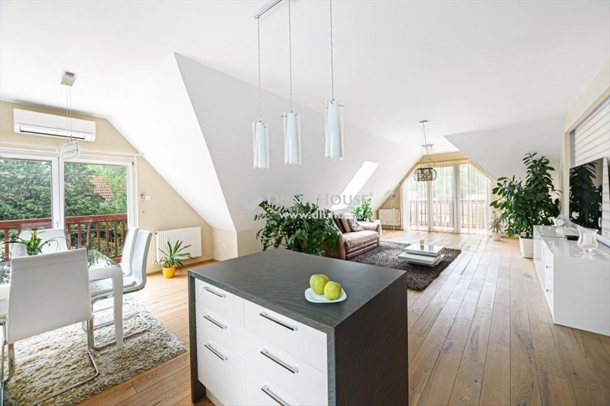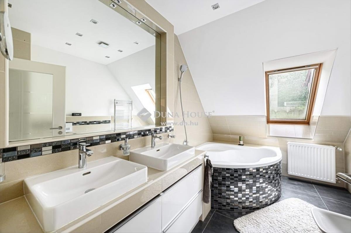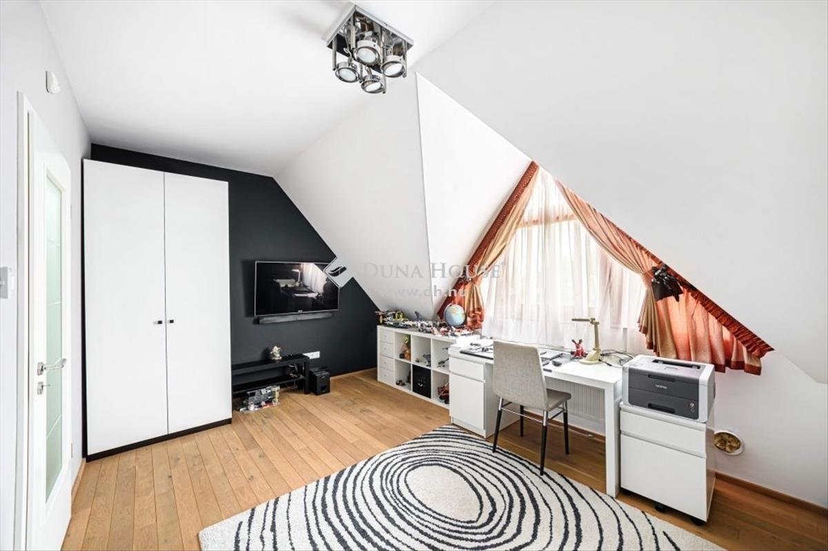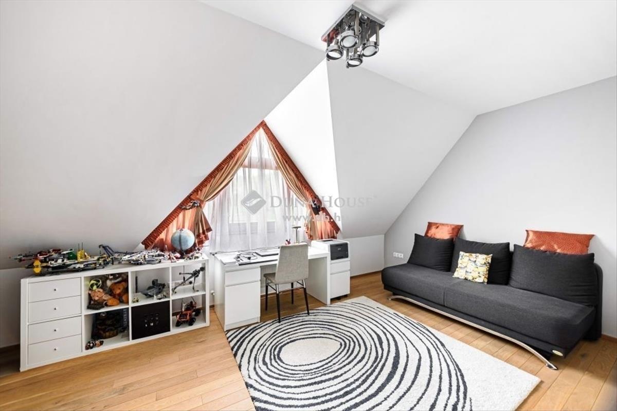 *** Exclusive panorámás nagylakás az erdő ölelésében! ***Megvételre kínálok Budapest XII. kerület egyik legnívósabb részén, csodálatos zöld környezetben, egy 173 négyzetméteres minden igényt kielégítő lakást. a 2 szintes ingatlan, egy 5 lakásos társasház 2. emeletén és tetőterében helyezkedik el, közvetlen szomszéd nélkül. a lakás belsőépítész tervei alapján került kivitelezésre, minden részletét a prémium anyaghasználat, a tágas jól funkcionáló terek, és a harmónia jellemzik. Az alsó szinten található a 48 négyzetméteres amerikai konyhás nappali, amely DNY-i tájolásának, és nagyméretű üvegfelületeinek köszönhetően rendkívül világos, jól benapozott. a 3 hálószobát, a központi élettértől elkülönülten a lakás hátsó részében alakították ki. Ezen a szinten található még egy kádas fürdőszoba, egy tusolós fürdőszoba, egy háztartási helyiség, valamint a szülői hálóhoz tartozó gardrób helyiség. Az ingatlan 4 db, összesen 15 négyzetméteres, részben fedett erkélykapcsolattal rendelkezik ahonnan csodálatos panoráma nyílik a környező hegyekre, az erdőre, és a városra egyaránt. a belső lépcsőn megközelíthető tetőtérben, az életértől elszeparáltan került kialakításra a saját wellness rész közel 50 négyzetméteren. Itt található egy professzionális gépekkel felszerelt edzőterem, egy mosdóhelyiség, valamint egy aromaterápiával és sótéglával ellátott infraszauna. a fűtésről Immergas gázkazán gondoskodik padlófűtéses, a tetőtérben radiátoros hőleadással, a hűtést 3 db klíma biztosítja. a szülői hálóban kiegészítő fűtésként egy hangulatos fatüzelésű kandalló is helyet kapott. Az ingatlan főbb műszaki jellemzői:- tégla teherhordó és válaszfalak 15 cm homlokzati hőszigeteléssel- magas minőségű fa nyílászárók, Schindler és Velux tetőablakok, részben zsalúziákkal és uv hálóval ellátva- Edelholz tölgyfa parketta, prémium olasz hidegburkolatok- egyedileg gyártott magasfényű konyhabútor, Aeg, Bosch, Liebherr gépesítéssel, aktívszenes, elektromágneses beépített vízszűrő berendezéssel- Grohe csaptelepek, bidés wc ülőkék- riasztórendszer, kamera előkészítésA gépjárművek biztonságos parkolása a lépcsőházból is megközelíthető zárt teremgarázsban megoldott. a lakáshoz 2 db parkolóhely tartozik, amelyekre kötelező vételi opció vonatkozik 15 Mft/db értékben. a garázsszinten található még egy zárt tároló, szintén kötelező vételi opcióval 5 Mft értékben. Az ingatlan mindenkori tulajdonosa rendelkezik továbbá egy udvari beálló kialakítási jogával, amely a támfal helyén megoldható. a lakásban található beépített bútorok, és lámpatestek a vételár részét képezik, a műszaki cikkek(televíziók, mosógép, szárítógép) külön megállapodás keretében megvásárolhatóak. Amennyiben hirdetésem felkeltetté érdeklődését, valamint további információra van szüksége, várom megkeresését.
