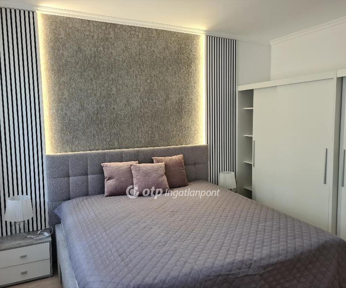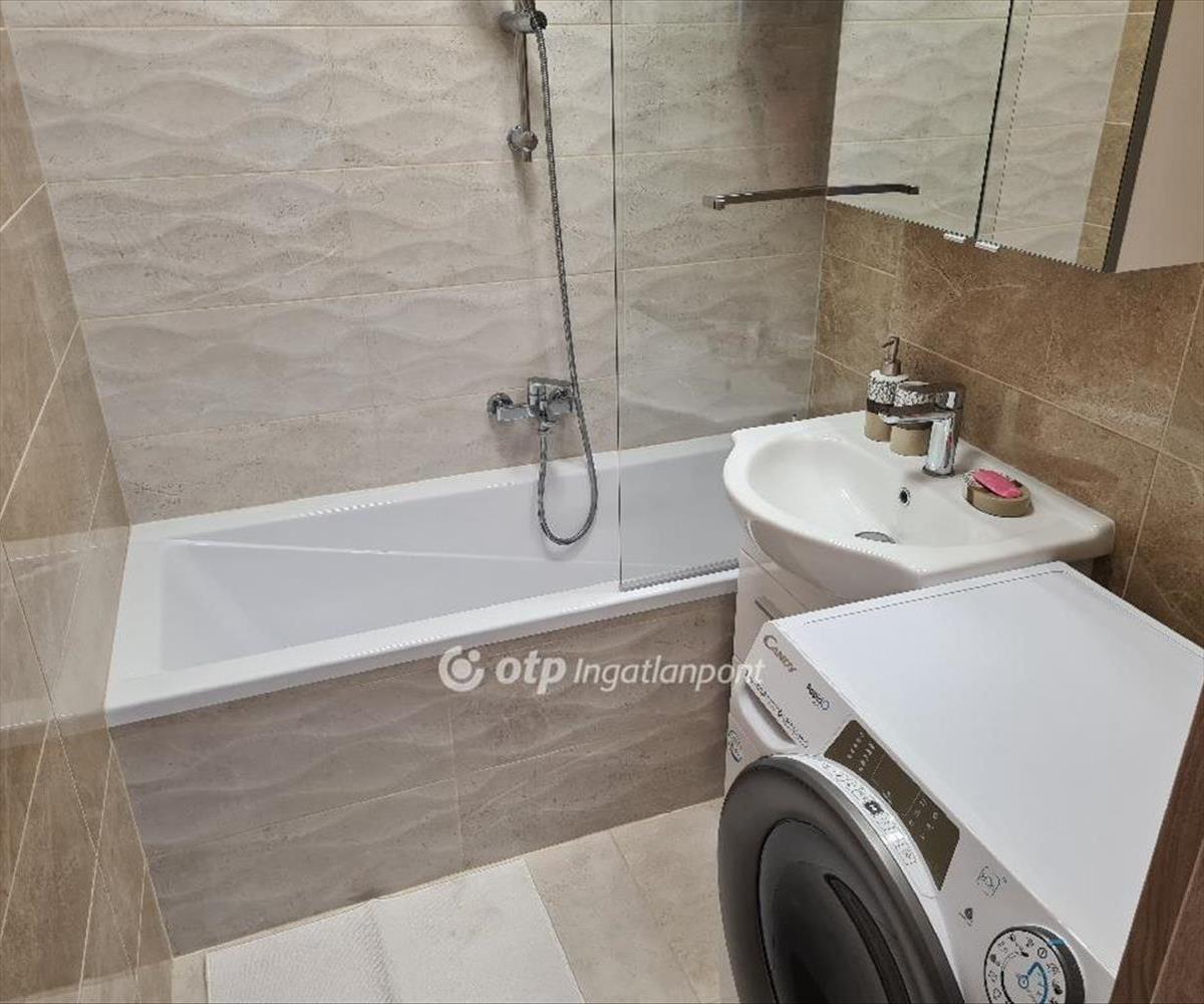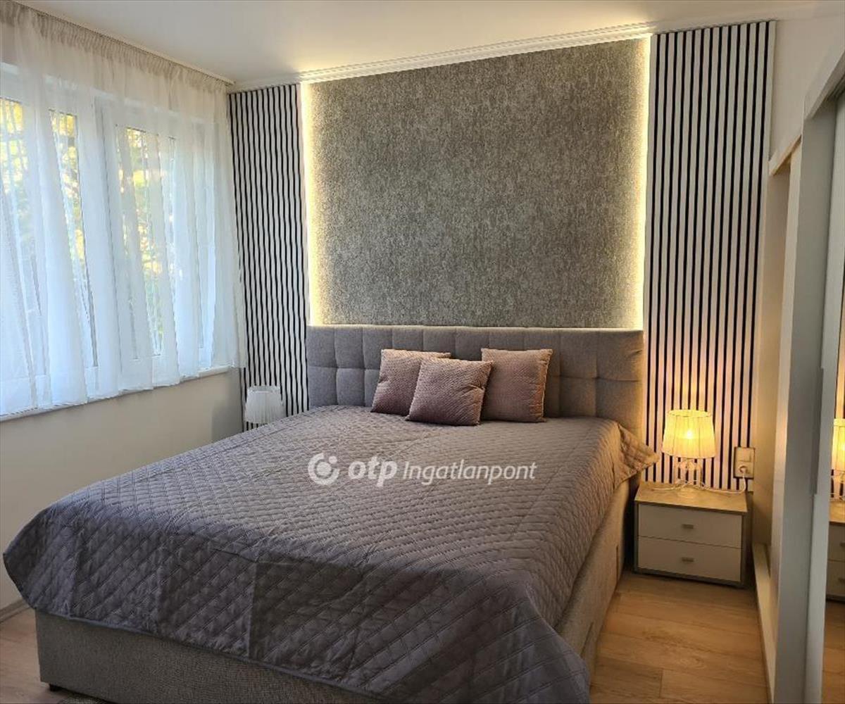 A tulajdonos a loggiát beépítette, növelve ezzel a nappali-étkező nagyságát, ugyanakkor végig, földtől plafonig érő fix ablakokkal és dupla-szárnyú erkélyajtóval nyitotta meg a teret a panoráma és a zárt, parkosított, játszóteres udvar felé. a nappaliban ágyazható, ágyneműtartós ülőgarnitúra, étkezőasztal székekkel, szófával, beépített, pakolható szekrénnyel és szekrénysorral. a félszobában mindössze egy íróasztal és egy gardrób szekrény található, nyitva hagyva a lehetőséget, hogy dolgozószobaként vagy gyerekszobaként fog funkcionálni. a hálószobában ágyneműtartós franciaágy éjjeliszekrényekkel, az egyik falon gardrób szekrény, a másikon komód szolgálja a leendő bérlő kényelmét. a fürdőszoba fürdőkádas, mosó-szárítógéppel felszerelt. a konyha beépített, jól pakolható szekrénnyel, 2 főzőlapos kerámia tűzhellyel, beépített hűtővel, sütővel, mosogatógéppel, kapszulás kávéfőzővel felszerelt. Az előszobában szintén beépített szekrény került kialakításra, a kabátoknak, cipőknek.