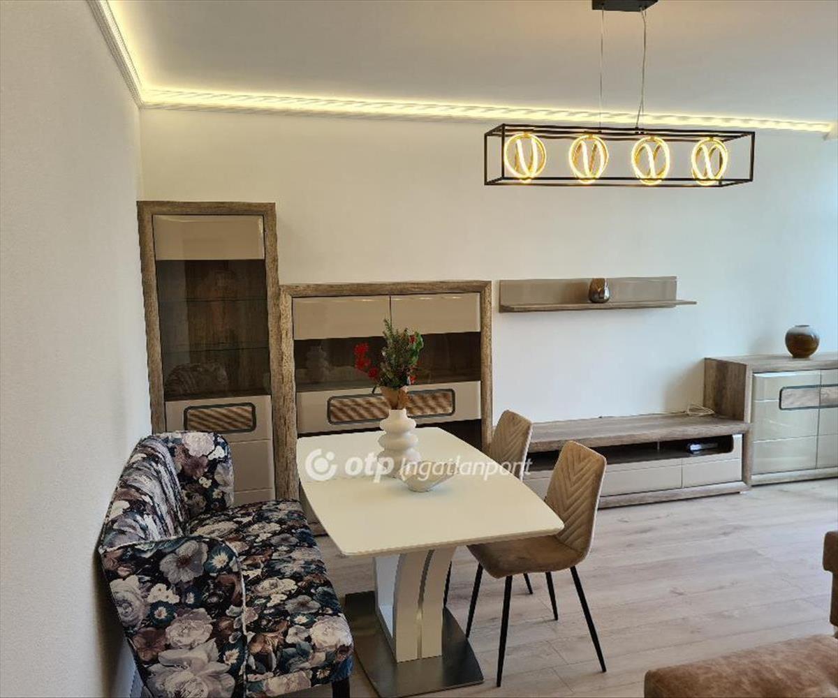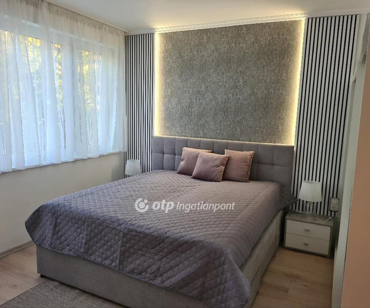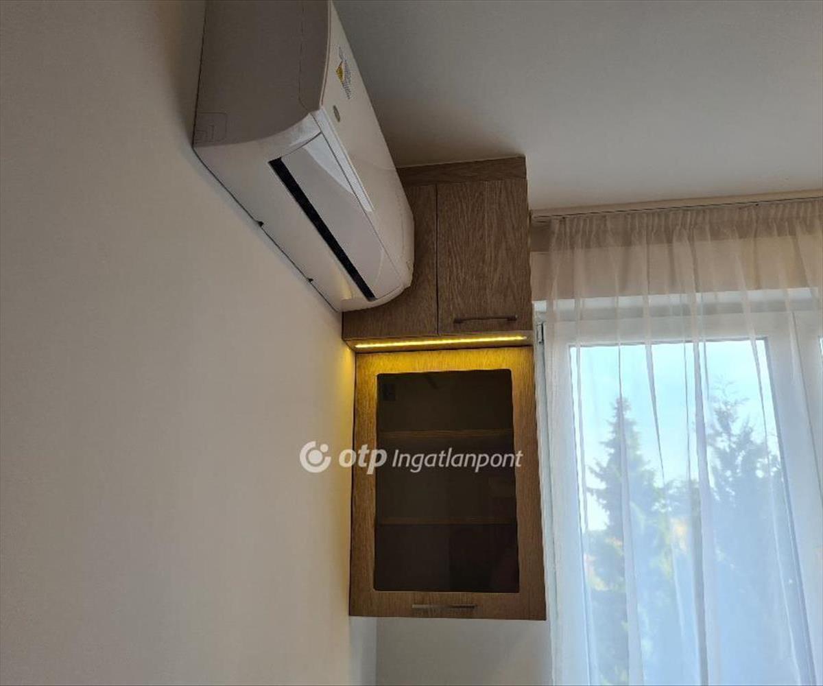 A tulajdonos a loggiát beépítette, növelve ezzel a nappali-étkező nagyságát, ugyanakkor végig, földtől plafonig érő fix ablakokkal és dupla-szárnyú erkélyajtóval nyitotta meg a teret a panoráma és a zárt, parkosított, játszóteres udvar felé. a nappaliban ágyazható, ágyneműtartós ülőgarnitúra, étkezőasztal székekkel, szófával, beépített, pakolható szekrénnyel és szekrénysorral. a félszobában mindössze egy íróasztal és egy gardrób szekrény található, nyitva hagyva a lehetőséget, hogy dolgozószobaként vagy gyerekszobaként fog funkcionálni. a hálószobában ágyneműtartós franciaágy éjjeliszekrényekkel, az egyik falon gardrób szekrény, a másikon komód szolgálja a leendő bérlő kényelmét. a fürdőszoba fürdőkádas, mosó-szárítógéppel felszerelt. a konyha beépített, jól pakolható szekrénnyel, 2 főzőlapos kerámia tűzhellyel, beépített hűtővel, sütővel, mosogatógéppel, kapszulás kávéfőzővel felszerelt. Az előszobában szintén beépített szekrény került kialakításra, a kabátoknak, cipőknek.