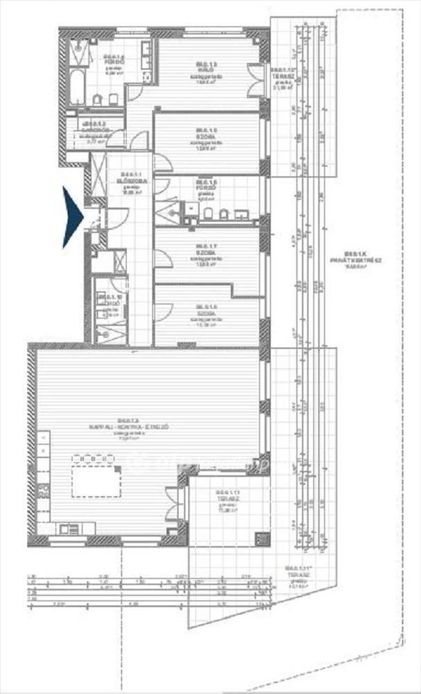 A hirdetésben szereplő, tágas, privát kertes lakás, az E épület földszintjén helyezkedik el, DK-i tájolással, 174, 1m2 alapterülettel, mely életteret tovább növeli a 78, 13m2 alapterületű terasz és a 158m2 területű kizárólagos használatú kert. a lakás helyiségei: előszoba, amerikai konyhás nappali és étkező, 4 szoba, 3 fürdőszoba, gardrób, terasz és kert.