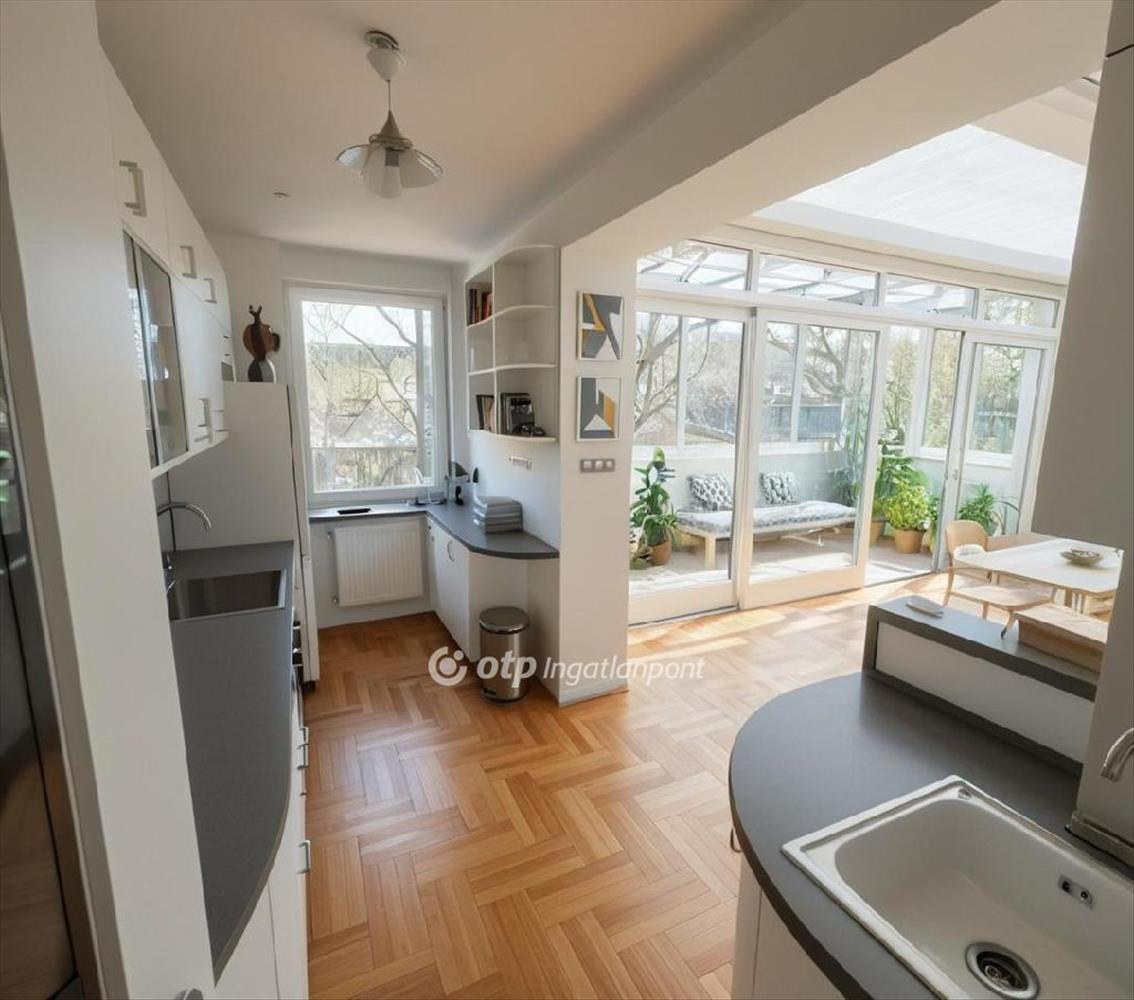 Zöldövezeti nyugalom, városi kényelem - eladó egy igazán különleges lakás a XII. kerületben, a Kis-Sváb-hegy lábánál, Hegyvidéken. a 131 nm-es téglaépítésű lakás nappaliból és három hálószobából valamint két fürdőszobából áll, így tökéletes választás családoknak, vagy azoknak, akik tágas tereket, fényt és kényelmet keresnek. a lakáshoz tartozik egy télikert, amely télen fűthető, nyáron pedig terasszá alakítható - közvetlen kilátással a gondozott kertre, és a Rózsadombra. a saját kertrészen játszótér és nyári konyha is található, így akár a hétvégén is igazán otthon érzi magát az ember. Előnye a nagy belmagasság és a világos, tágas terek. Garázs igény szerint bérelhető a házban, de az utcán ingyenes a parkolás. a közlekedés kiváló: a zöld, békés környék ellenére busz, villamos és fogaskerekű is mindössze öt perc sétára elérhető, így mind a természetközeli élet, mind a belváros közelsége adott. a környéken éttermek, Spar, cukrászda és virágbolt is található, de ha sétálnál, a Városmajor park is könnyen elérhető, vagy a természetbe vágyva a Kis-Sváb-hegy természetvédelmi területe csak pár perc sétával. Ha egy igazán különleges otthont keresel a budai zöld szívében, akkor keress a részletekért!A képek egy része látványterv, a lakás jelenleg bútorozatlan!