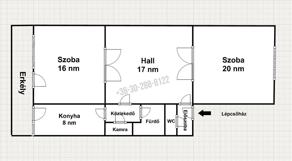 Ez a lakás tágas lépcsőházból nyílik, ezért nem kell függőfolyosókon körözz.