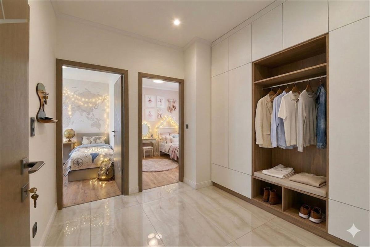 Két további tágas hálószoba, amelyekhez egy közös gardróbrész és egy elegáns fürdőszoba tartozik.