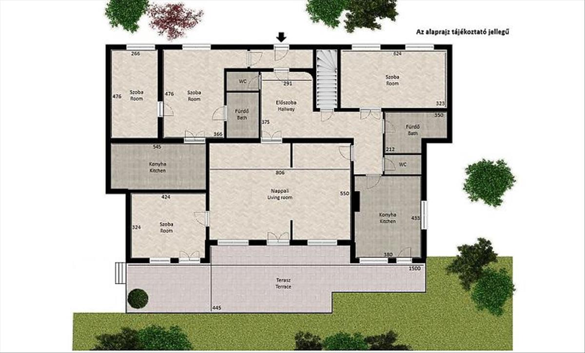 Szobái kényelmes méretűek és jó fényviszonyokkal rendelkeznek. Étkezős konyhája ugyancsak tágas és teraszkapcsolatos.