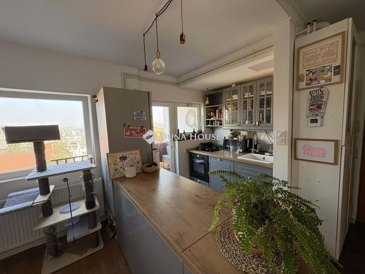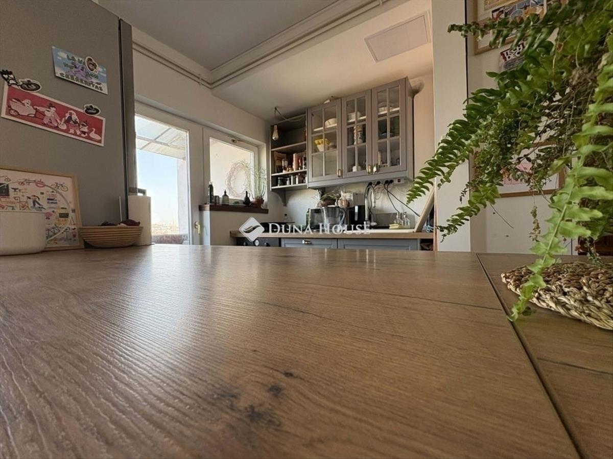 Nappaliból nyíló erkély, szép panoráma és csendes tetőtéri hangulat,