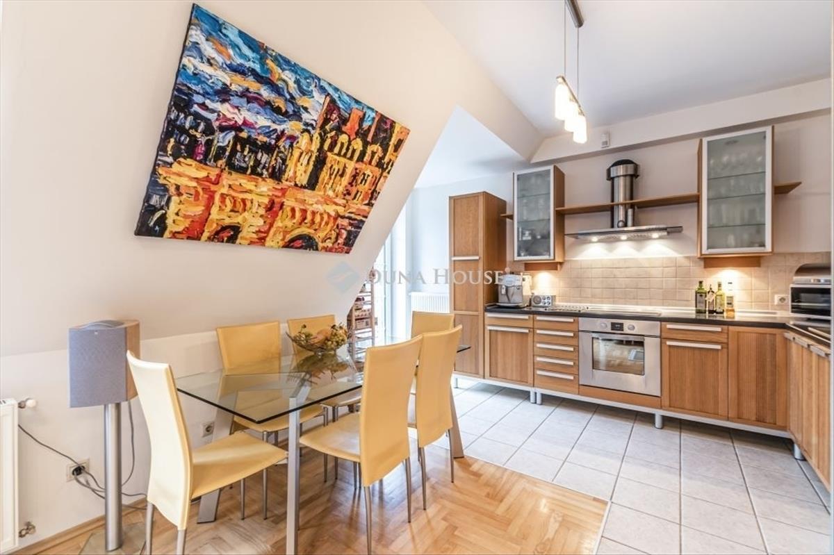 Budapest XII. kerületének egyik legnívósabb, zöldövezeti részén kínálok megvételre egy egyedi hangulatú, elegáns prémium lakást, amely nemcsak otthon, hanem életérzés: tágas amerikai konyhás nappali étkezővel, 2 külön nyíló hálószoba, fürdőszoba és külön WC/zuhany, valamint egy lenyűgöző, 48 m²-es, zavartalan panorámát nyújtó tetőterasz, amely akár közvetlenül lifttel is megközelíthető a garázsból – ideális helyszín pihenéshez vagy vendégfogadáshoz; az ingatlan egy 2000-es években épült, klasszikus stílusjegyeket hordozó, mindössze 6 lakásos társasházban található, közvetlen erdőszomszédságban, nyugodt, fás környezetben.