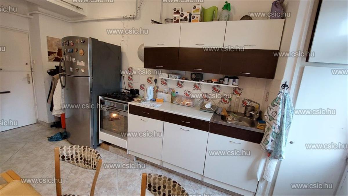 A kitünő adottságokkal rendelkező összkomfortos lakás, praktikus beosztású, NY-i tájolású. a nappali előtt teljes szélességében erkély húzódik. Az ablakok a zöld, fás, bokros kertre néznek. Az erkélyről szép kilátás nyílik a hegyek felé. Korábbi átalakítás során, a helyiségek funkcióváltásával (szoba, előszoba, konyha egybenyitásával) egy nagyméretű konyha + étkező jött létre. a kádas fürdőszoba és a wc külön helyiségben lett kialakítva.