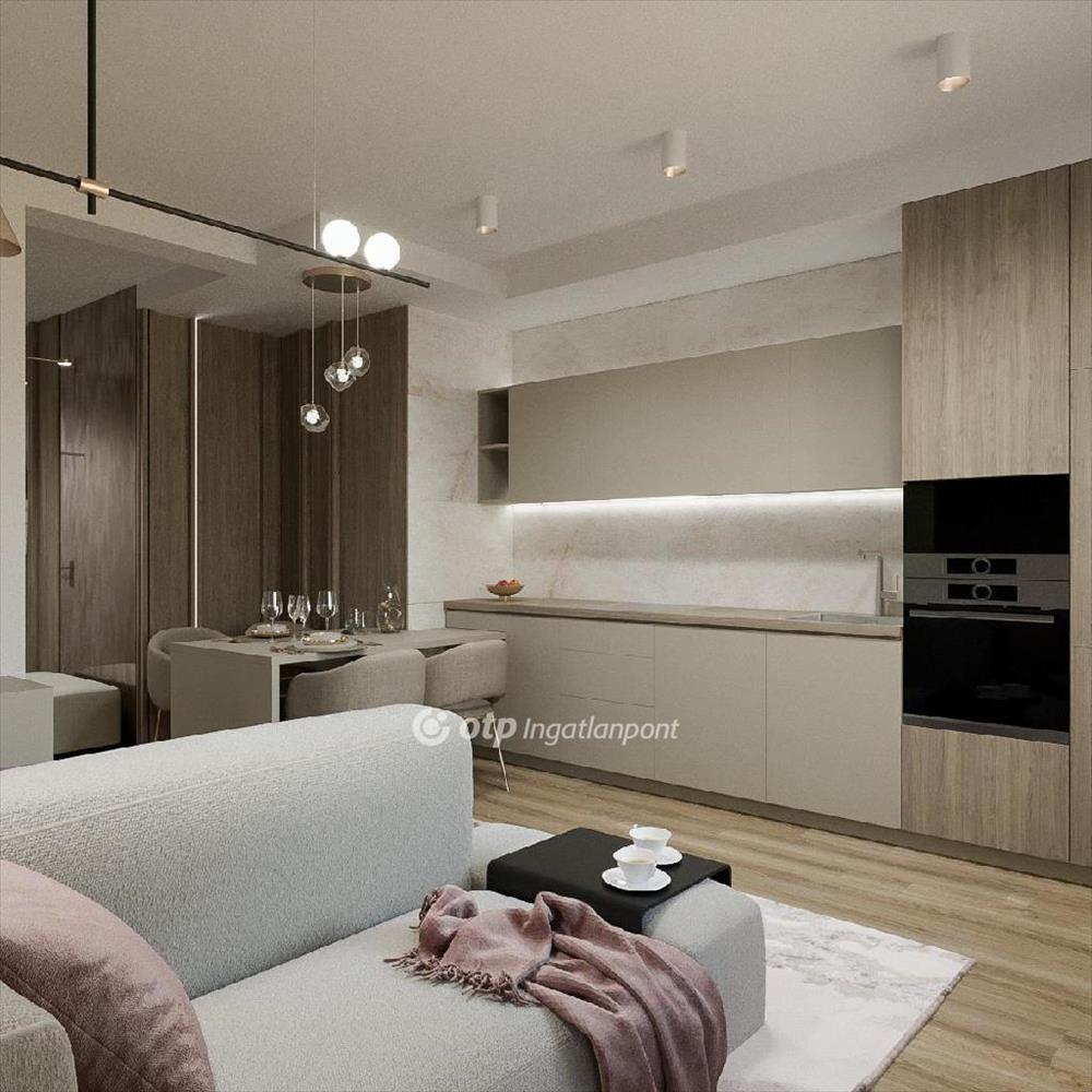A hirdetés fotói a lakás jelenlegi üres állapotát és a tervezett dizájn látványképeit egyaránt tükrözik.