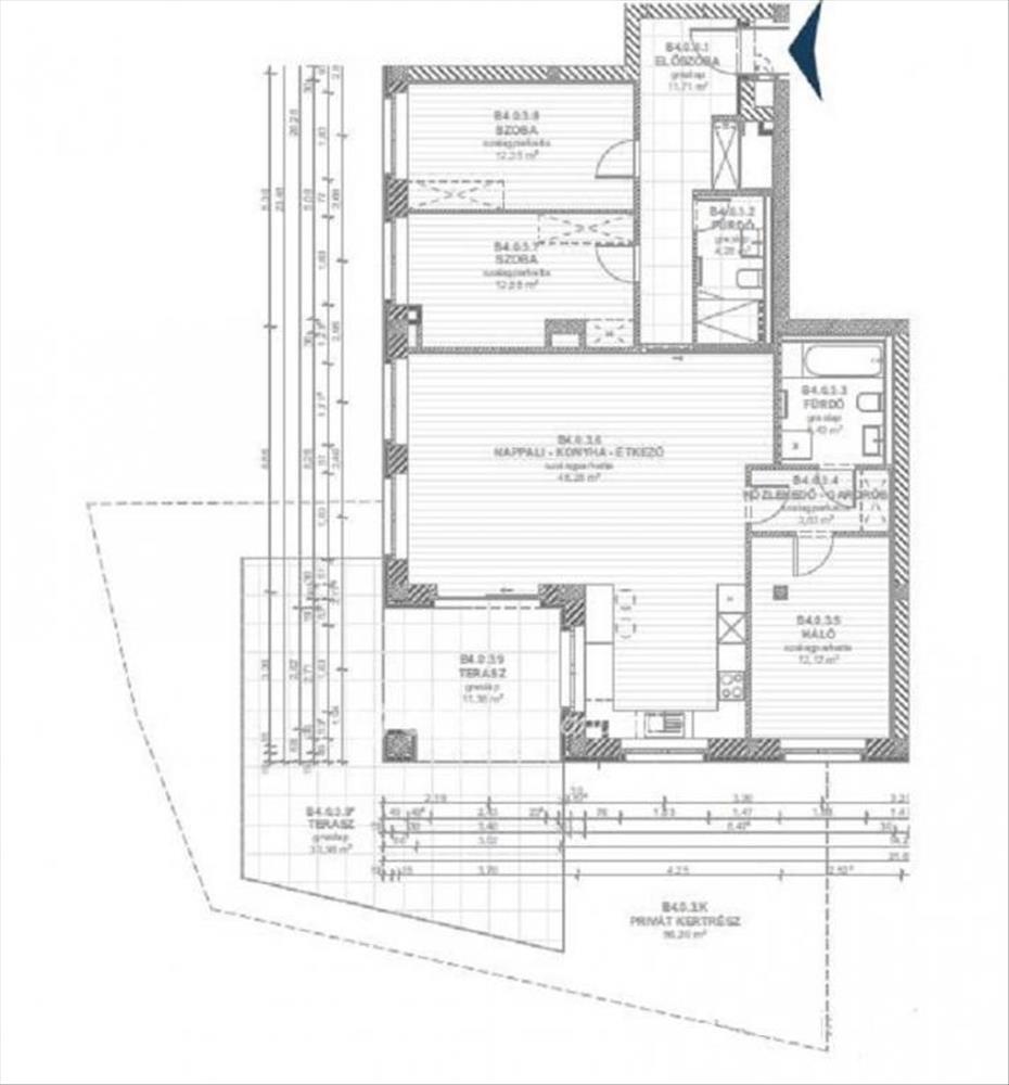 A hirdetésben szereplő lakás, a D épület földszintjén helyezkedik el, ény tájolással, 108. 55 m2 alapterülettel, mely életteret tovább növeli a 45. 36 m2 alapterületű terasz és a 56. 30 m2 területű privát kert. a lakás helyiségei: Előszoba, Szoba, Amerikai konyhás nappali, Szoba, Fürdőszoba, Fürdőszoba, Közlekedő-Gardrób, Kamra.