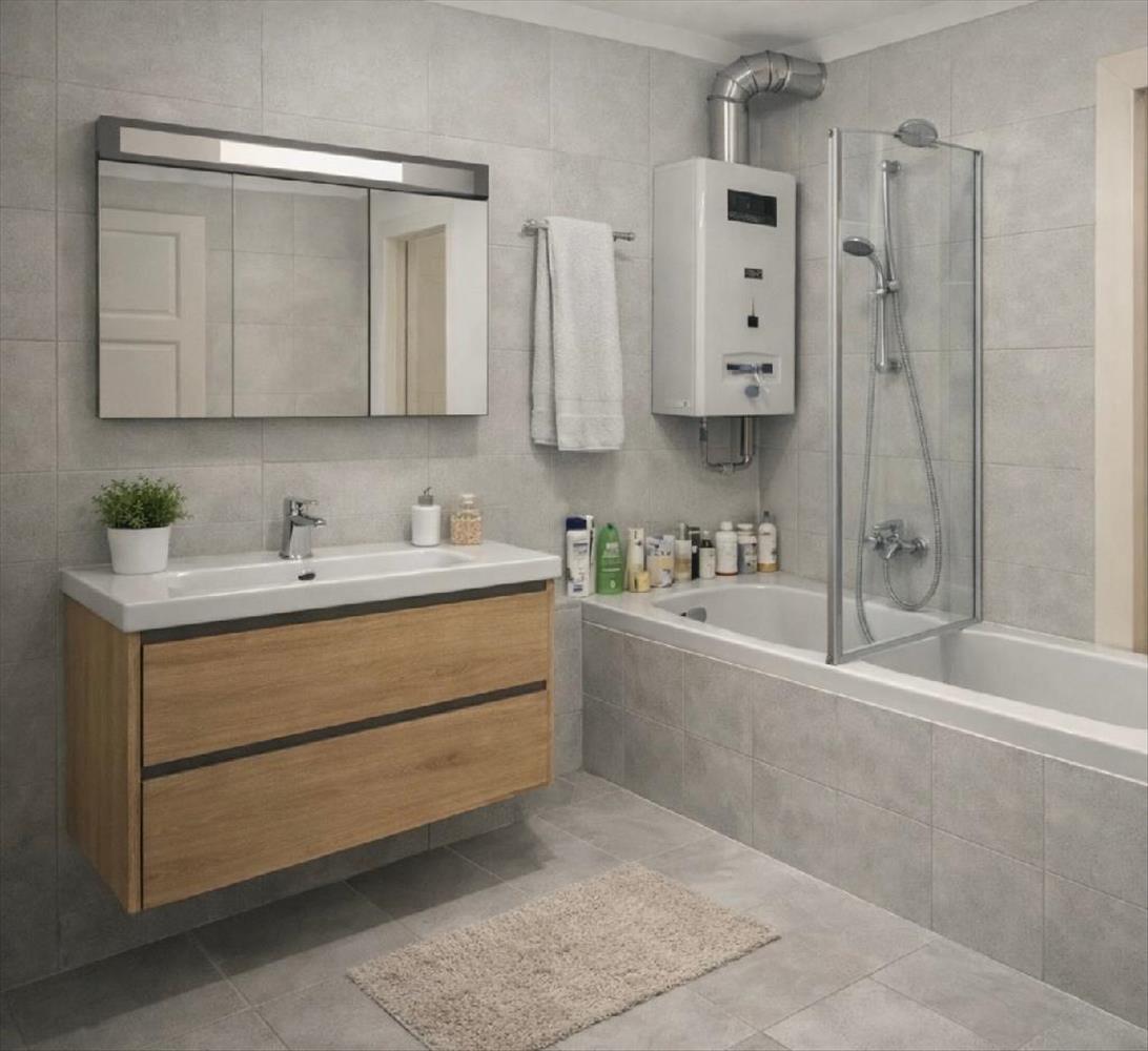 A lakás fűtését gázkonvektrok biztosítják, melegvízet gáz vízmelegítő.